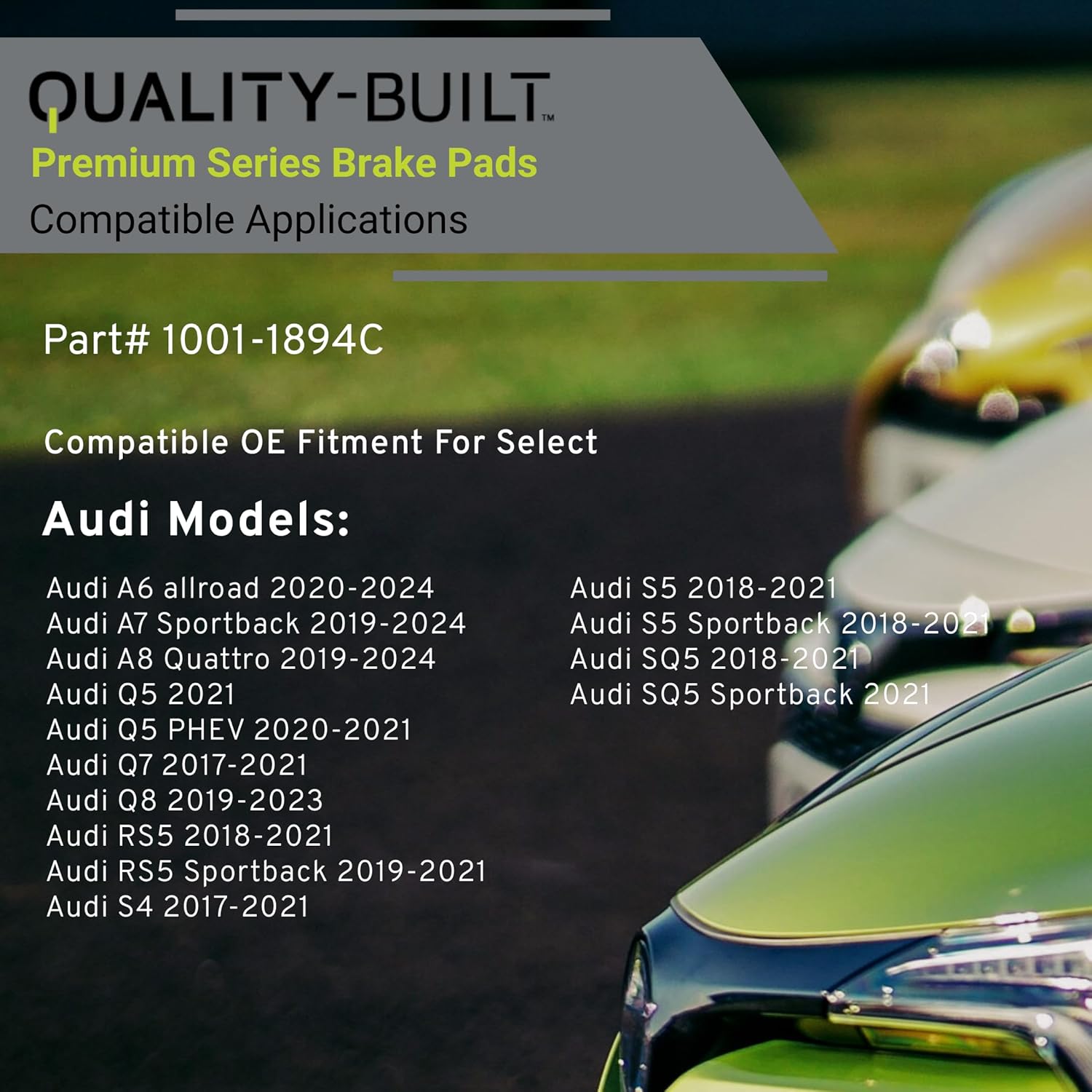 Premium Ceramic Front Brake Pads (1001-1894C) Compatible with 2017-2024 Audi (A6 allroad/A7 Sportback/A8 Quattro/Q5/Q5 PHEV/Q7/Q8/RS5/RS5 Sportback/S4/S5/S5 Sportback/SQ5/SQ5 Sportback)