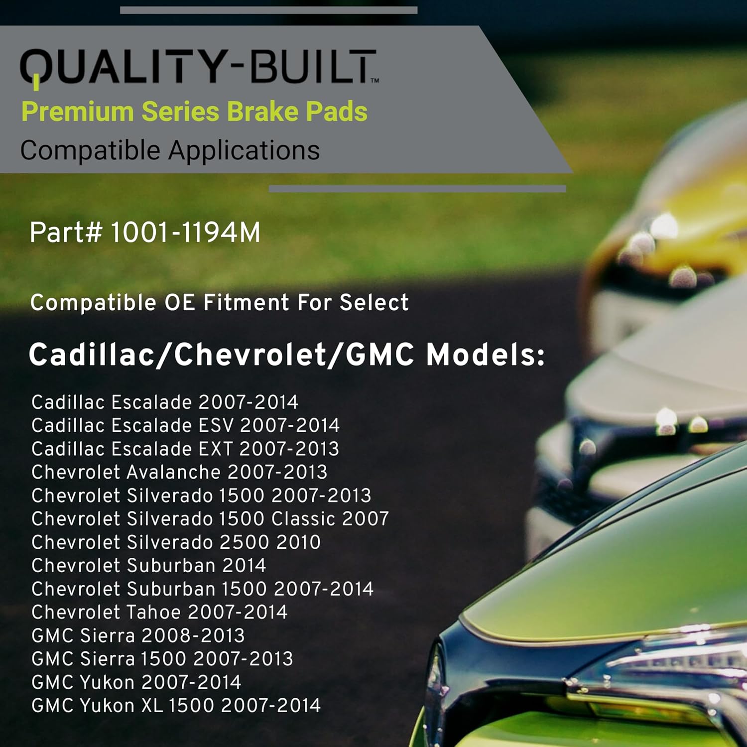 Premium Semi-Metallic Rear Brake Pads (1001-1194M) Compatible with 2007-2014 Cadillac/Chevrolet/GMC (Avalanche/Escalade/Escalade ESV/Escalade EXT/Sierra/Silverado/Suburban/Tahoe/Yukon)