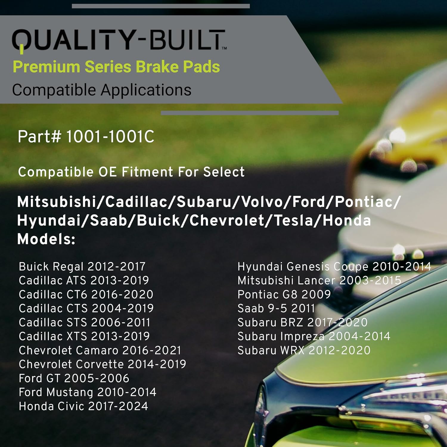 Premium Ceramic Front Brake Pads (1001-1001C) Compatible with 2003-2024 Cadillac/Chevrolet/Ford/Honda/Mitsubishi/Subaru/Toyota (ATS/BRZ/Camaro/Civic/Corvette/CT6/CTS/Mustang/WRX & More)