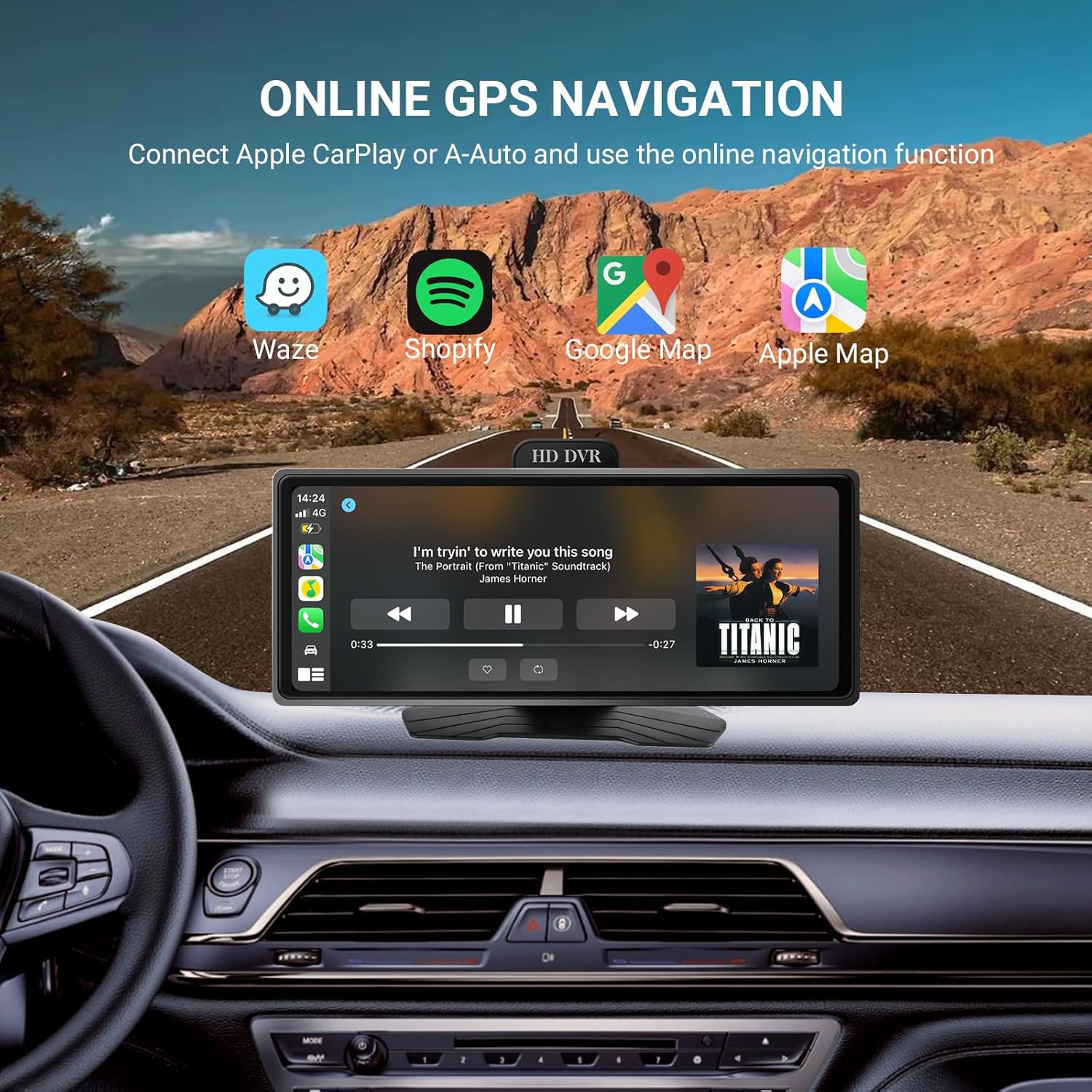‌9.26 Inch Wireless Apple CarPlay & Android Auto Car Display with 1080P Dash Cam & Backup Camera All-in-One Smart Car Stereo Free 64GB SD Card