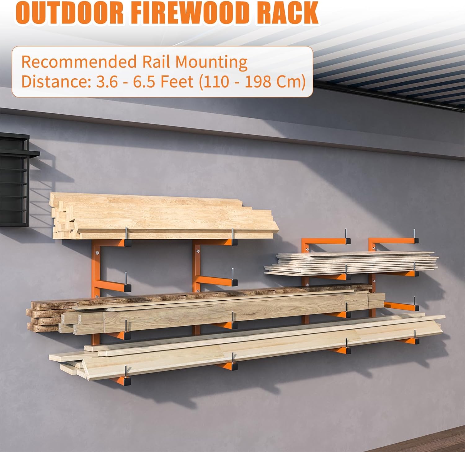 4-Pack Lumber Storage Rack, Wood Storage Racks Wall Mount, Heavy Duty Garage Wood Organizer With 8-Level System, Orange Utility Rack Organization Up 1600 Lbs, Metal Lumber Shelf for Indoor & Outdoor