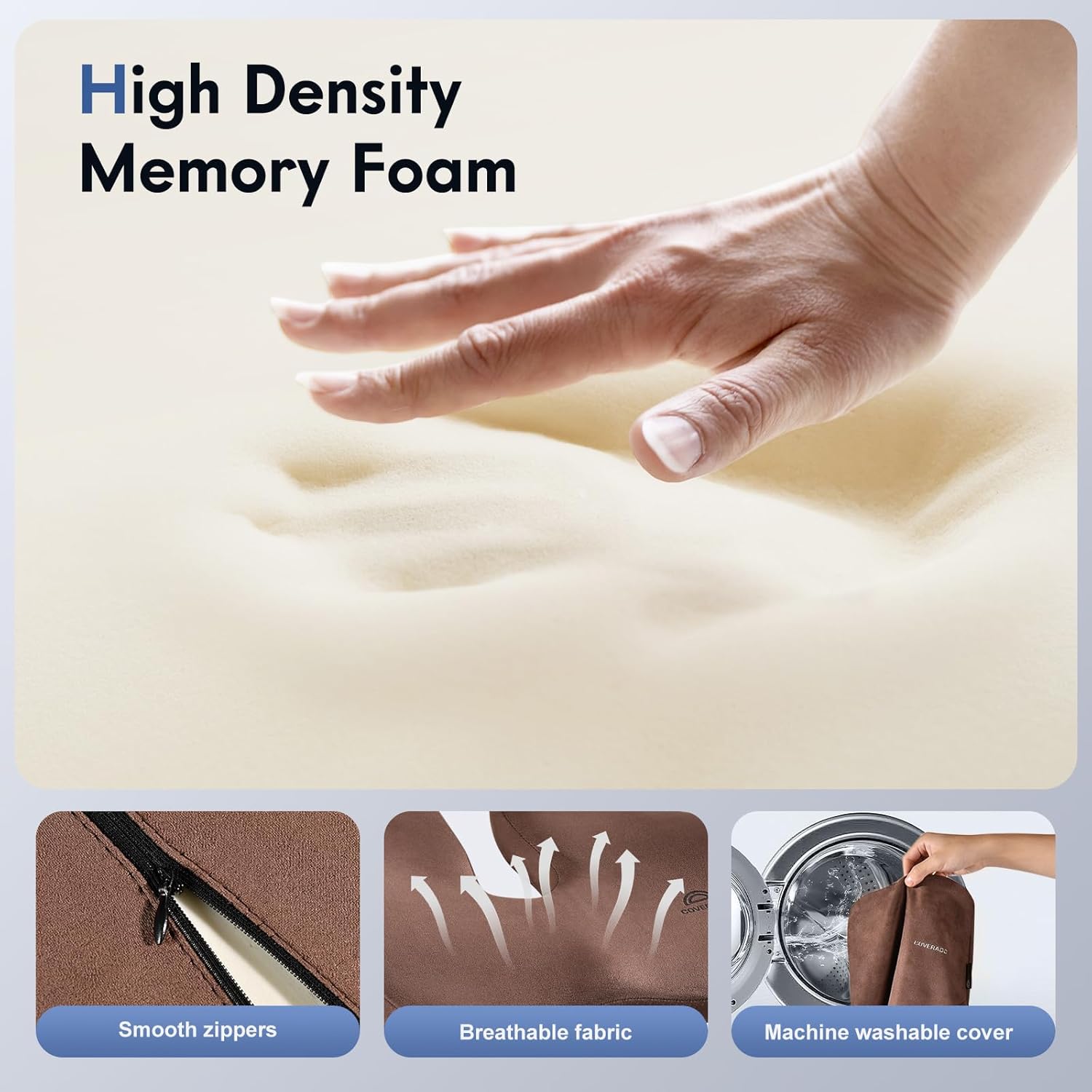 Coverado Memory Foam Car Seat Cushion and Lumbar Support Pillow for Car, Ergonomic Office Chair Cushion for Lower Back Pain Relief, Breathable & Non-Slip for Car, Home, and Office Use, Coffee