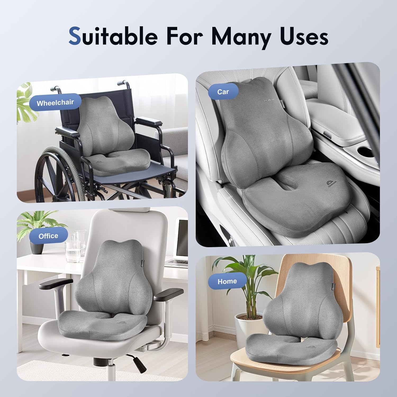 Coverado Memory Foam Car Seat Cushion and Lumbar Support Pillow for Car, Ergonomic Office Chair Cushion for Lower Back Pain Relief, Breathable & Non-Slip for Car, Home, and Office Use, Gray