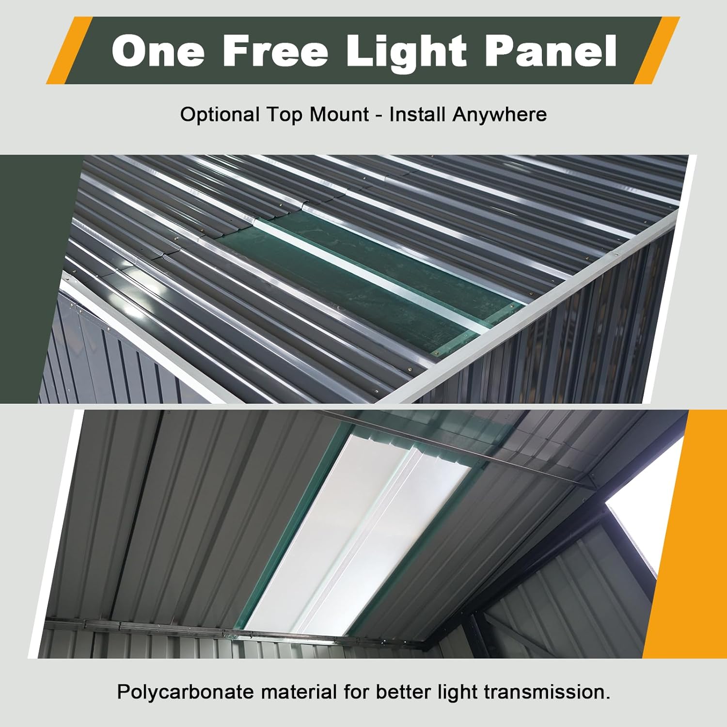 - Bright & Practical Skylight Roof Design: The sloped roof structure promotes water runoff and prevents buildup, while a translucent PC skylight panel fills the outdoor storage building with soft natural light—no more fumbling in the dark.