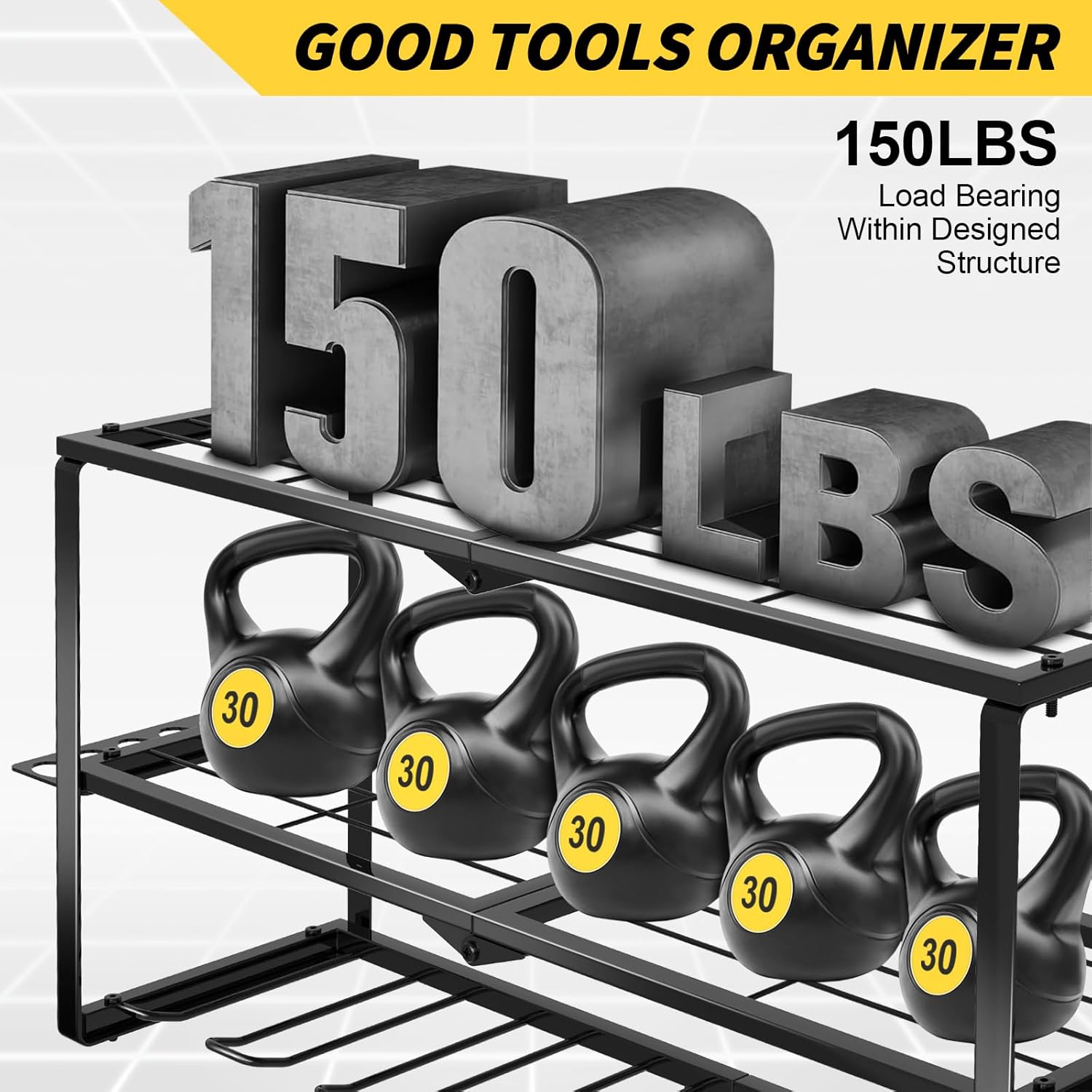 Large Power Tool Organizer Wall Mount,3 Layer Heavy Duty Tool Storage Rack Loads 150lbs,With 7 Cordless Drill Holders,Workshop,Utility Racks for Garage Workshop,Shed - Cool Gifts for Men,Dad,Husband