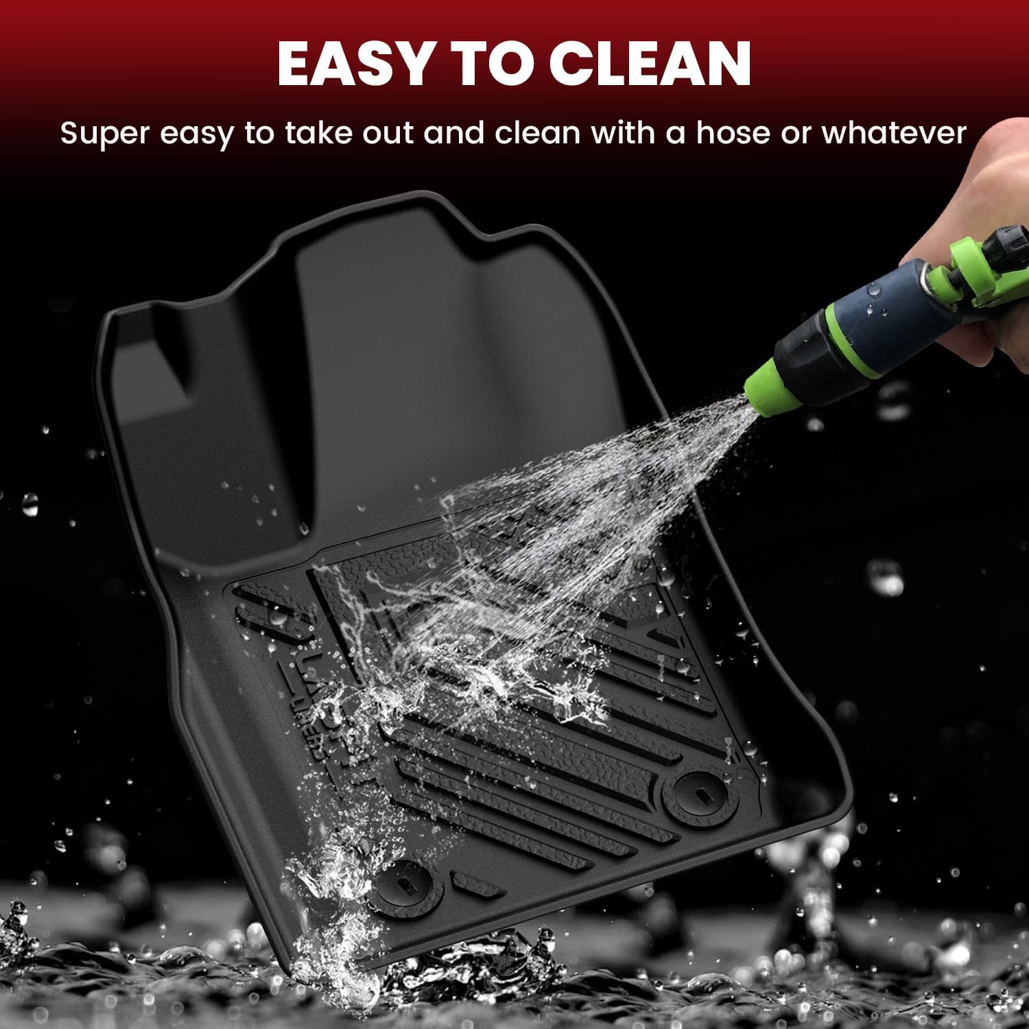 - ALL WEATHER PROTECTION - Shields your floor from dirt, mud, salt, rain, snow and even hot summer temperatures. Cleaning up daily wear and tear off our car mats is a breeze.