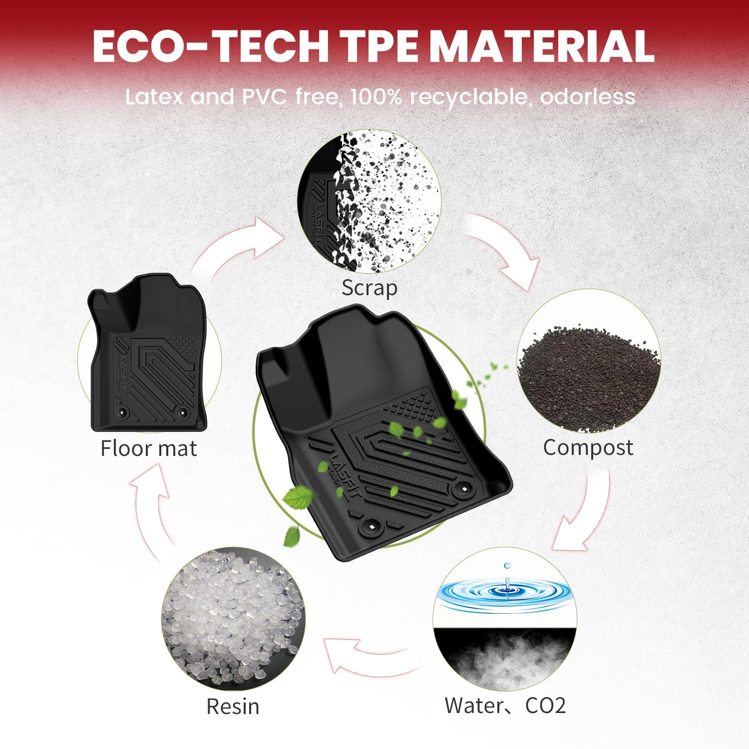 - ENVIRONMENT FRIENDLY- Our car liners use elastic TPE (Thermoplastic Elastomer) for a soft touch and exquisite finish. It's skid-proof and recyclable.