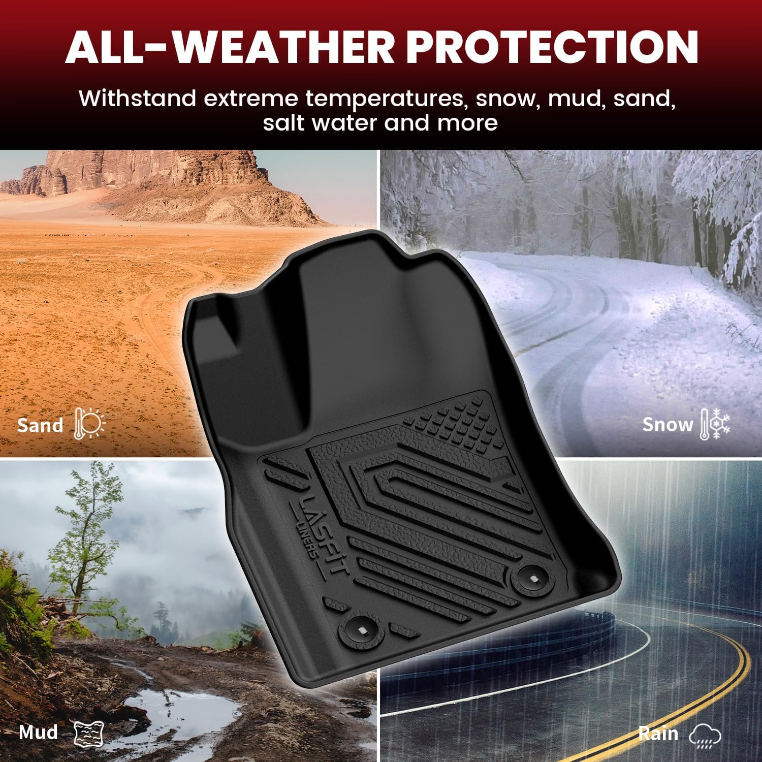 - FIRM YET FLEXIBLE - Raised edges all the way around have been upgraded to the use of innovative material, allowing our floor liners last long, way more durable that they won't curl or end up buckling.