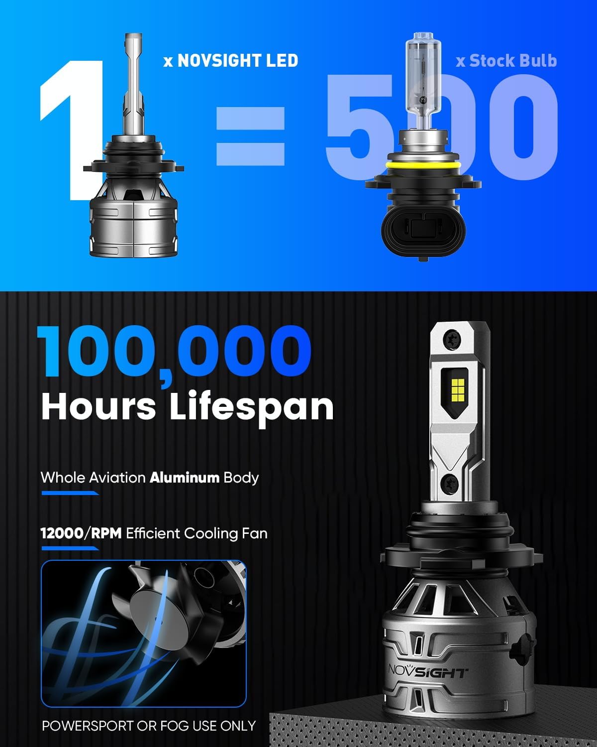 - ăBrighter Output, Clearer Night DriveăNOVSIGHT 9005 h11 bulbs offer up to 4Ă brightness over stock, helping you see farther and clearer on dark roads. Better visibility means safer driving and reduced accident risk at night.