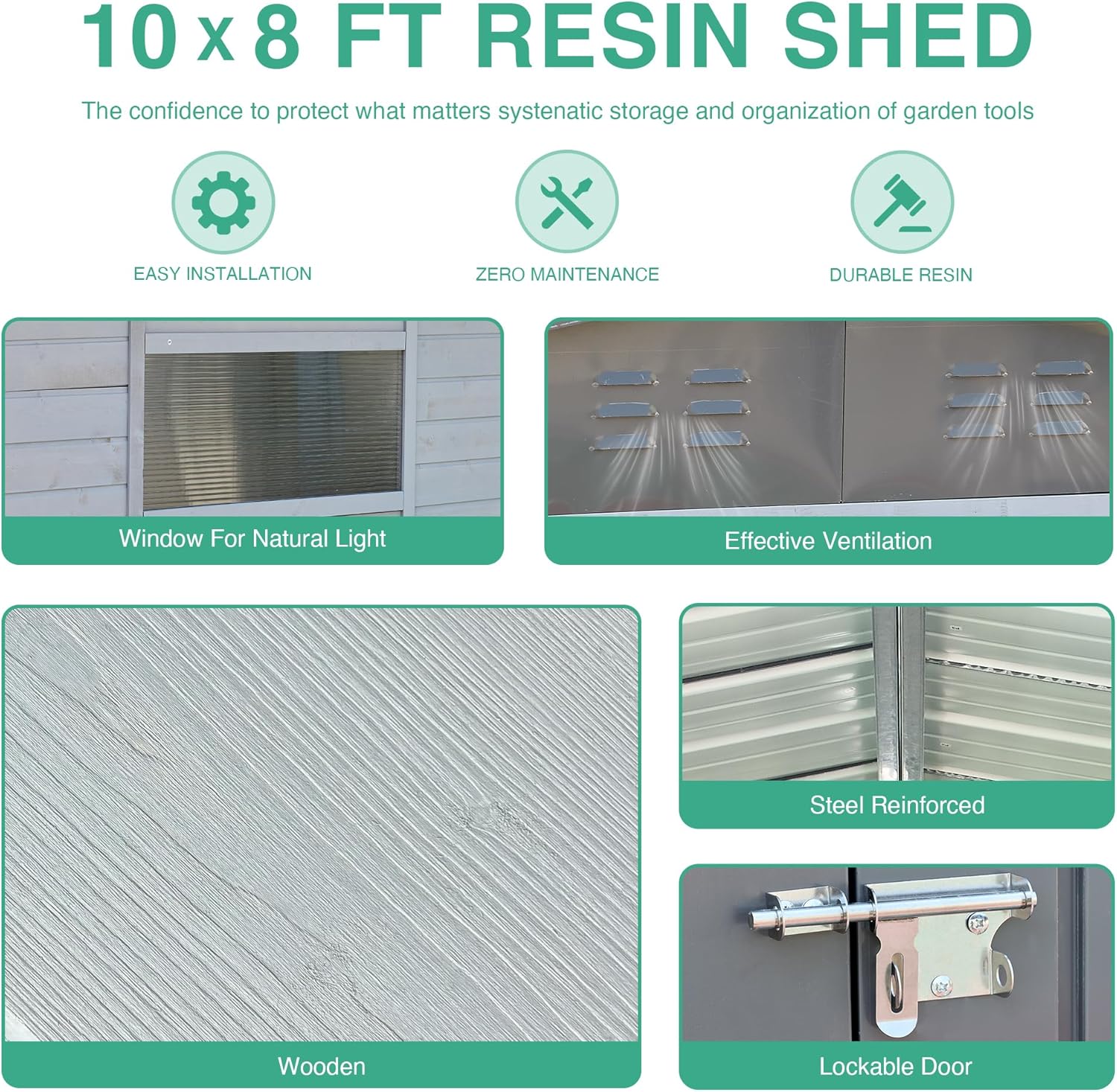 - [Built-In Vents & Adjustable Windows] — Fresh Air & Natural Light: This shed features 4 integrated vents and 2 clear acrylic windows that you can place where you need them. It helps maintain good air circulation and brings in sunlight—ideal for storing outdoor items in a well-ventilated, naturally lit space.