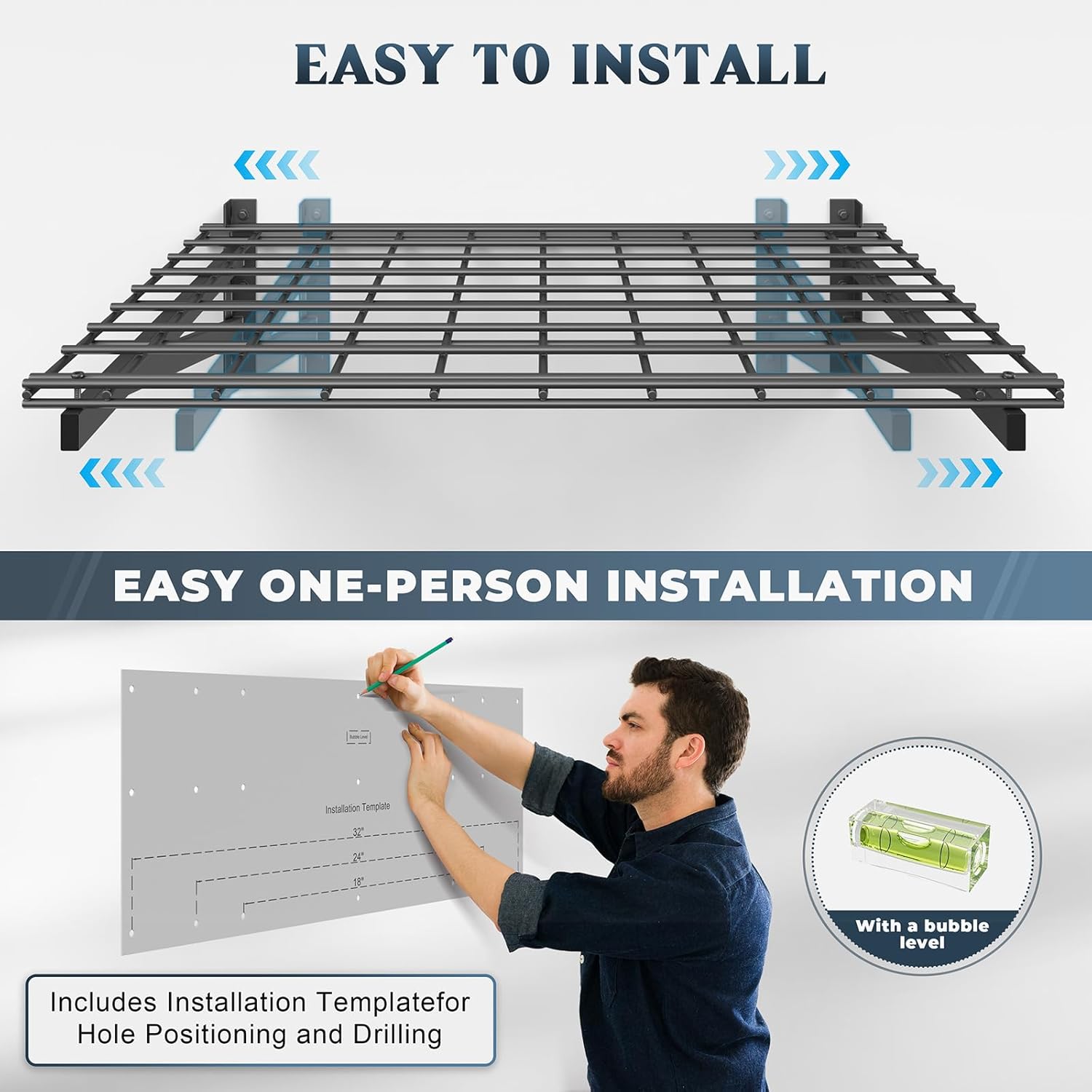 - 🔧【Effortless Modular Installation】- No drilling expertise required! Simply align the template, secure the brackets, and snap the grids into place. Compatible with concrete, wood, and brick walls (note: not for metal walls). Transform your cluttered garage into an organized space in under 30 minutes!