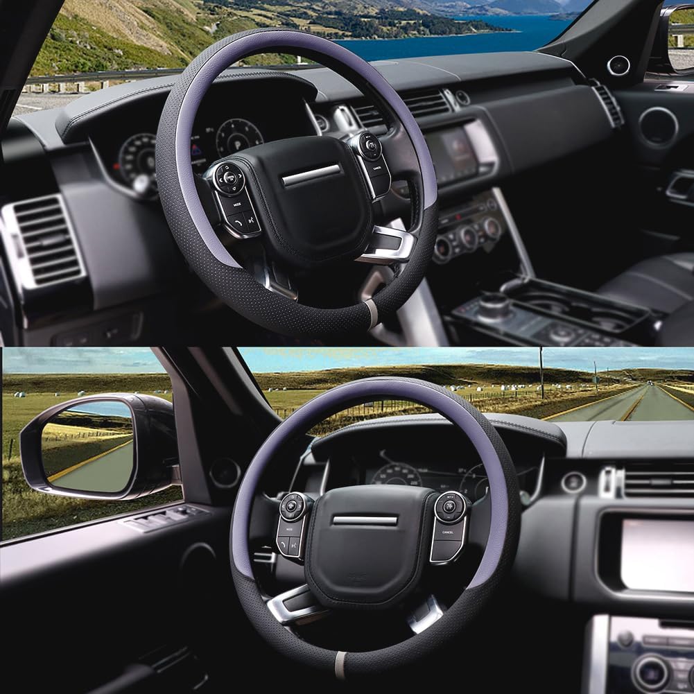 - Heavy-Duty Microfiber Leather Construction: Crafted from wear-resistant microfiber leather, this steering wheel cover grip withstands daily friction and sunlight exposure. Wipe clean in seconds with a damp cloth—no special cleaners needed. Its long-lasting design minimizes replacements, making it a practical upgrade for any vehicle