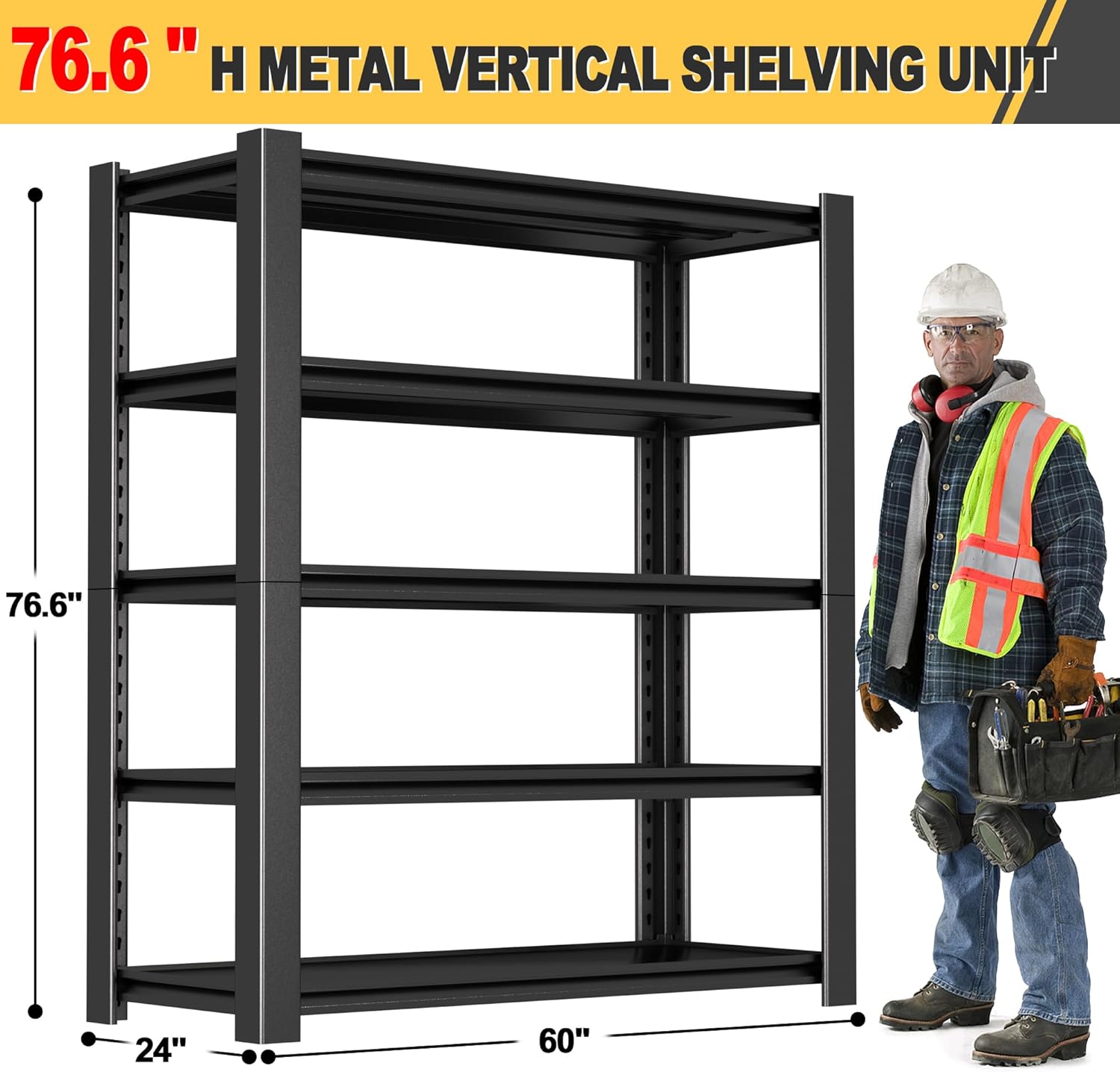 - Versatile Garage Storage Rack: With dimensions of 76.6"H x 60"W x 24"D, this garage storage rack fits a variety of storage needs and spaces, from small garages to large workshops.