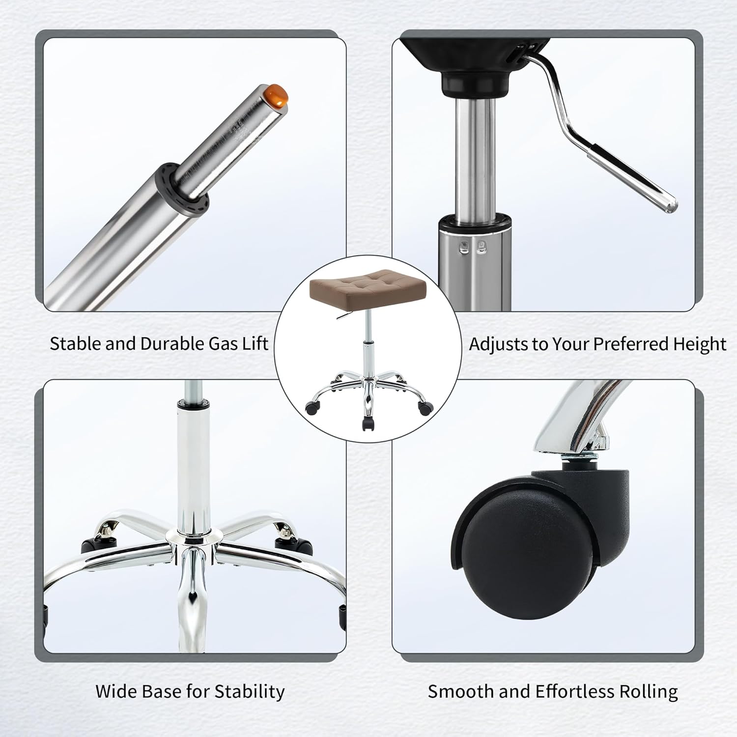 - Multi-Purpose Stool for Home and Work: This rolling stool features adjustable height to accommodate different tasks and users. Suitable for home use at vanities, desks, or kitchens, it offers easy mobility and fits various room styles. In professional settings such as offices, nail salons, barbershops, tattoo studios, beauty salons, medical facilities, or retail spaces, it provides stable seating and supports comfortable positioning during use