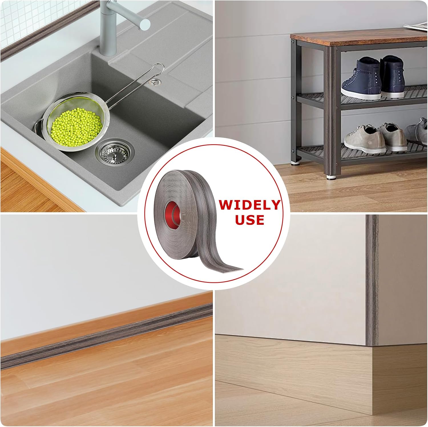 - [Multiple Application] The versatility of our corner molding trim is essential as it can adhere seamlessly to various surfaces, including tiles, plastic, marble, metal, glass, wood, and smooth walls. This makes it suitable for use in bathrooms, bedrooms, living rooms, kitchens, offices, toilets - essentially anywhere you need added protection or decorative enhancement.