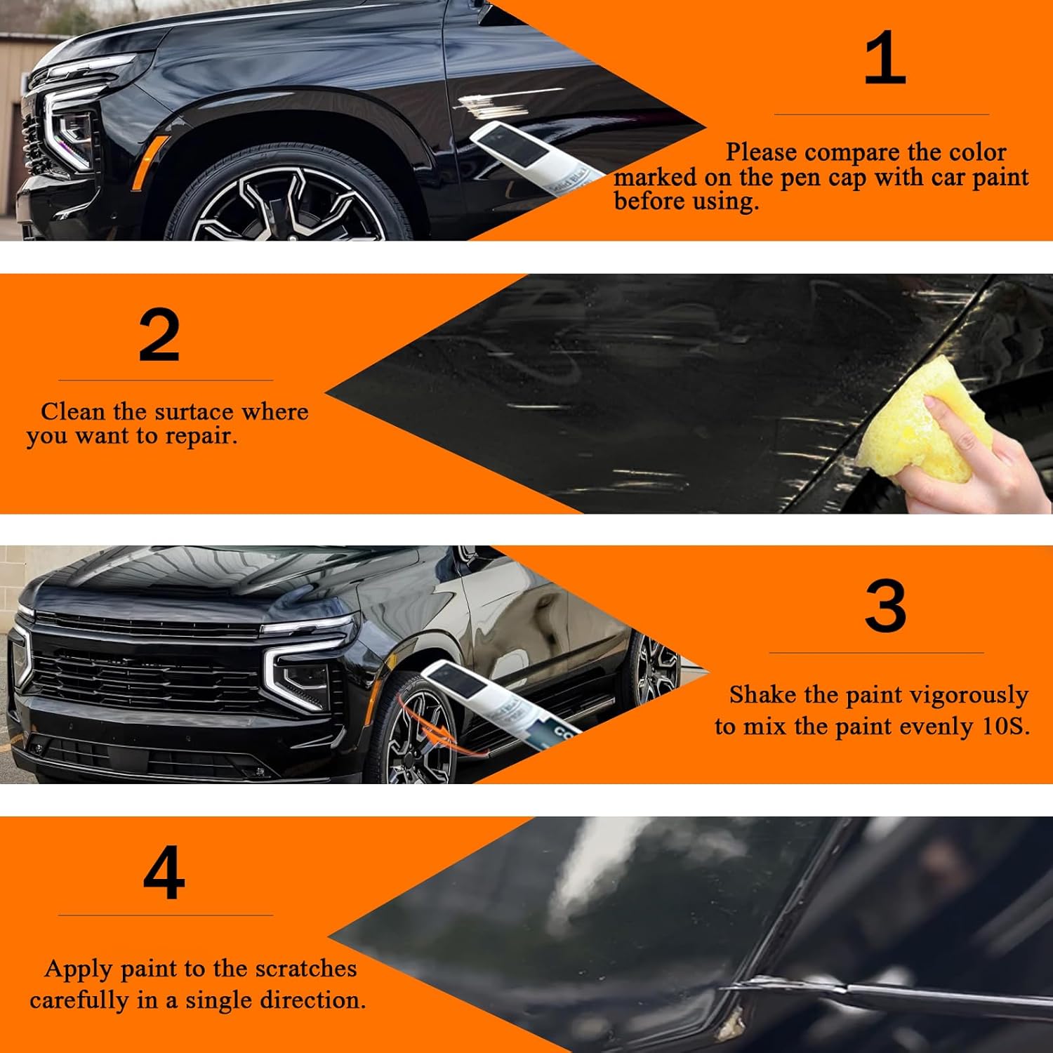 - ăApply adviceăThis paint is easy to use. Simply clean the surface and remove the grease, and shake for about 1 minutes to mix the paint well. paint repair kit is suitable for small chips or larger dings. It will dry in 10 minutes. Before use, please try it on paper to confirm that the color matches your vehicle's paint