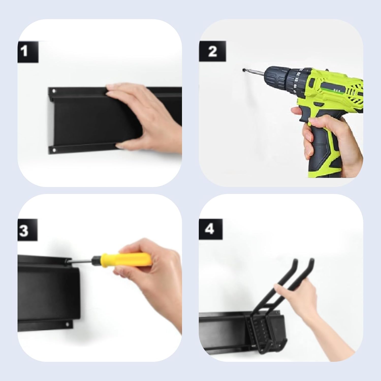 - 【Multifunctional】 Garage racks for storage can be installed in garages to hang garden tools and folding chairs; they can be installed in gyms to store dumbbells and yoga mats; they can be installed in repair rooms to hang wrenches, chainsaws, and other equipment; they can be installed on balconies or in bedrooms to hang everyday cleaning tools.