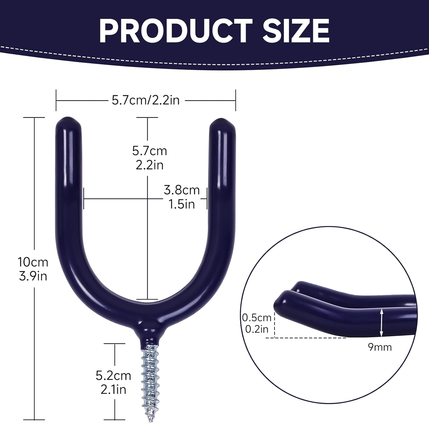 - **Two Mounting Options for Flexibility** *U-shaped hook* slot into pegboards, slat walls, or wire racks. *Screw-in hooks* allow direct wall or ceiling mounting for permanent storage
