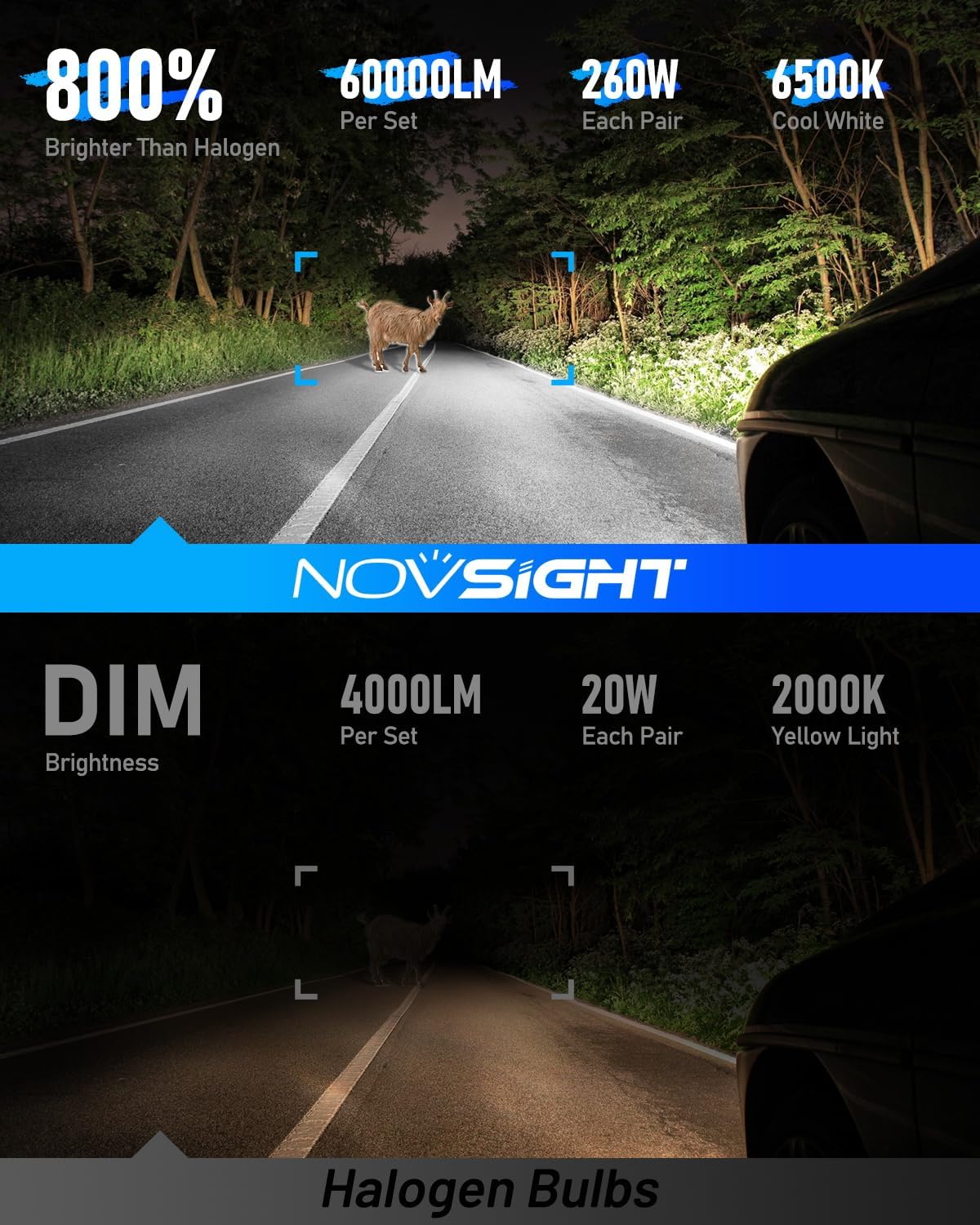 NOVSIGHT H11 9005 LED Fog Light Bulbs,100000 Lumens,6500K Cool White Light,800% Brightness,Plug and Play, Pack of 4