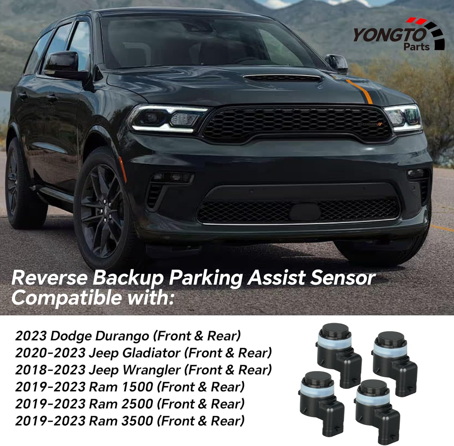 6MK25TZZAA 4Pcs Reverse Backup Parking Assist Sensor Compatible with Ram 1500/2500/3500 2019-2023, Dodge Durango 2023, Jeep Gladiator 2020-2023, Wrangler 2018-2023 Replace OE 6MK25VCAAA