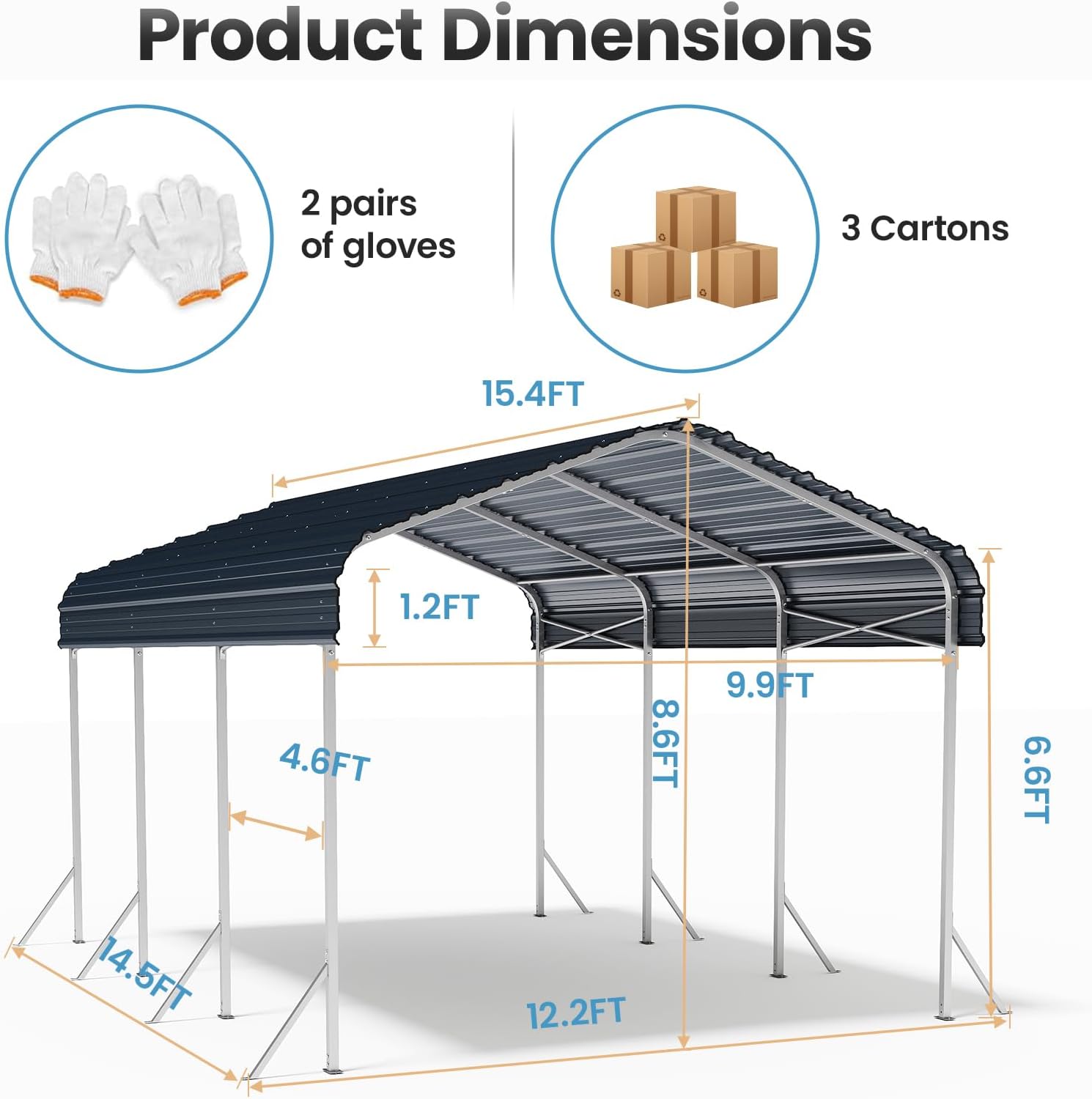 - Spacious & Multi-Purpose Design – The 10x15' size easily accommodates cars, trucks, boats, and tractors. The carport can be used not only as a carport canopy but also as an event shelter for outdoor events such as parties, weddings, and business shows