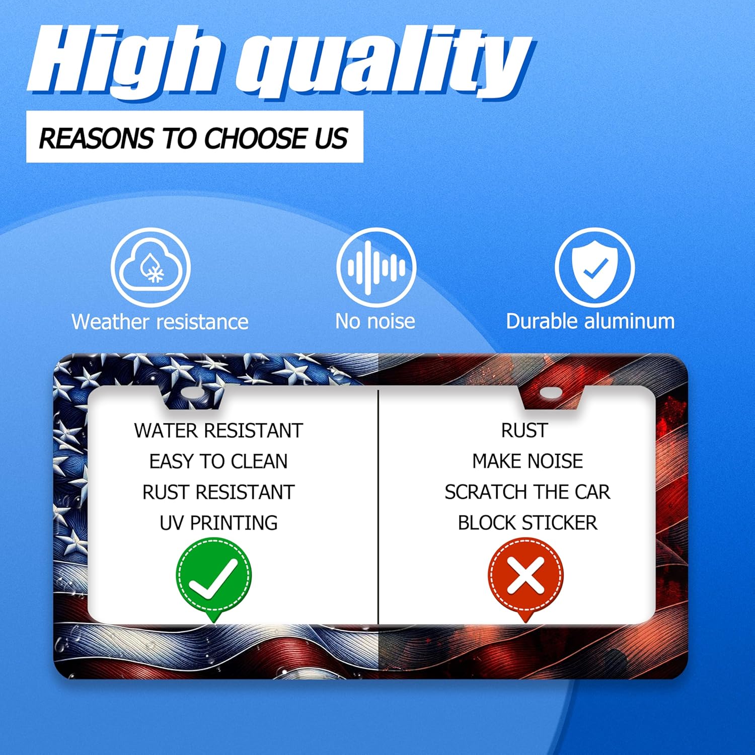 Personalised License Plate Frame American Flag USA License Plate Stainless Steel Funny License Plate Holder Patriotic Car Accessories Decoration 12.3" x 6.3" for Men Women
