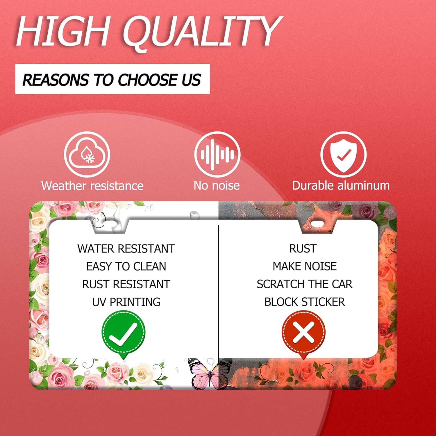 Pink Butterfly License Plate Frame Rose Flowers Floral License Plate Holder Colorful Auto Accessories for Women 6x12 Inch