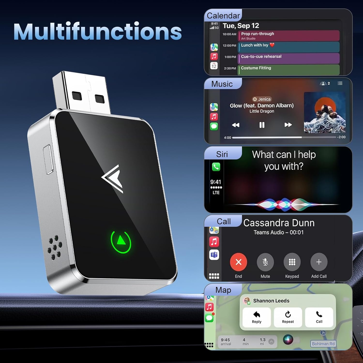 - 🛻【Advanced Chip and Superior Performance】 Our compatible with wireless Apple CarPlay adapter features the latest generation chipset and functions as a powerful CarPlay adapter. With built-in Bluetooth 5.3 and Dual-Band WiFi, this Apple Car Play wireless adapter offers stronger anti-interference capability and a fast, reliable connection. Whether you're navigating or streaming music, this wireless CarPlay adapter for iPhone ensures stable and lag-free operation throughout your journey.