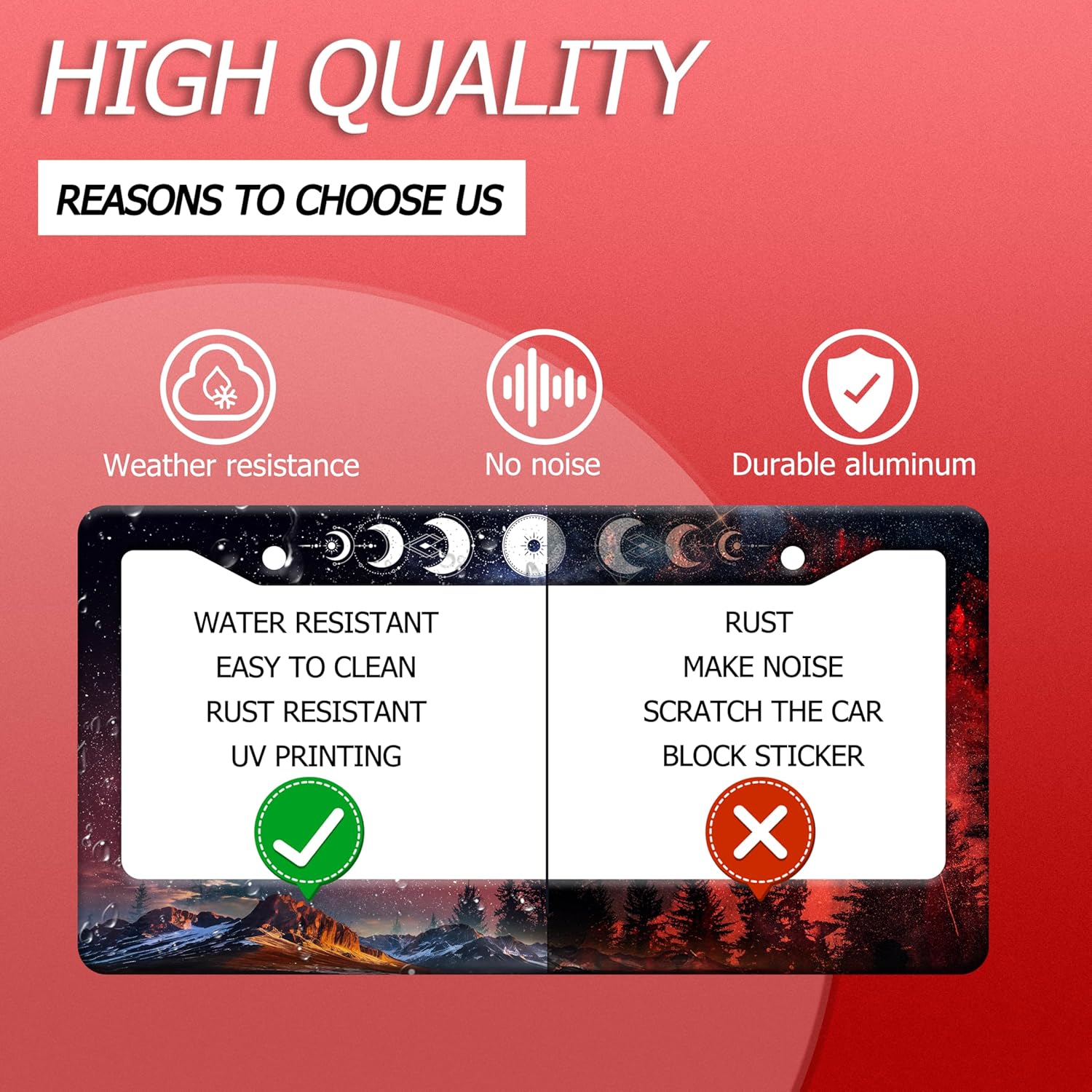 Moon Phases License Plate Frame Starry Sky Forest Moon License Plate Frames Funny Auto Accessories Bracket Stainless Steel License Plate 6.3x12.3 Inch for Women Men