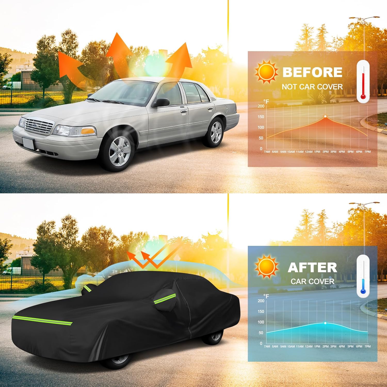 - ăAll-Weather ProtectionăThe crown victoria cover features durable 210D Oxford fabric with a cotton-lined interior, engineered to resist tears and scratches. This premium cover protects your vehicle's paint from rain, snow, sun exposure, bird droppings, and dust/dirtâdelivering reliable all-season protection.