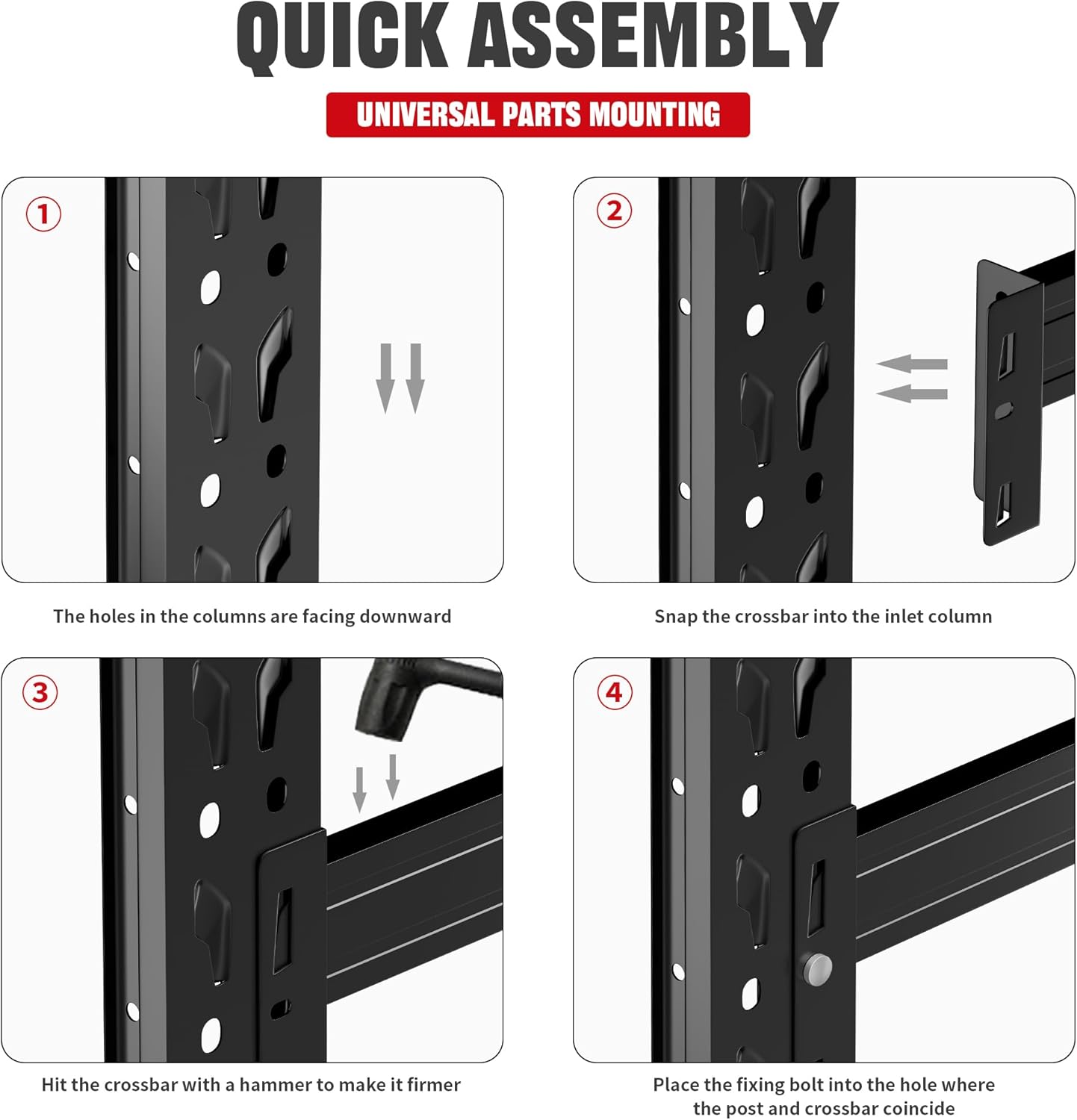 - 🍖【Easy Assembly】This shelving unit is designed for quick and hassle-free assembly. With clear instructions and all necessary hardware included, you can have your metal shelf set up in no time, saving you time and effort.