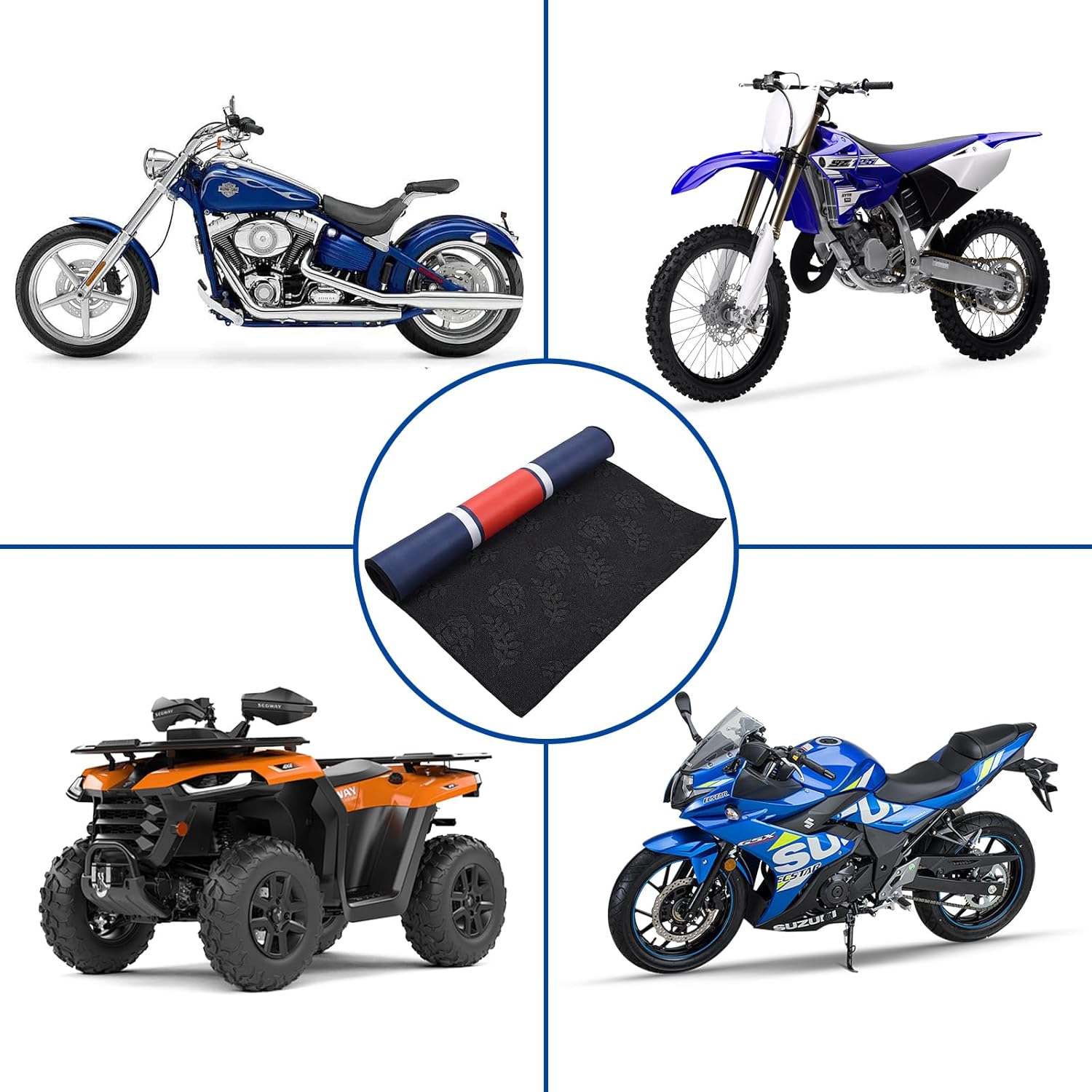 - 【Large Size, Fits All Motorcycles】motorcycle mat This 78" x 31" motorcycle mat provides full coverage for Harley, sports bikes, ATVs, and more. Protects your garage floor from spills, leaks, and tire marks.