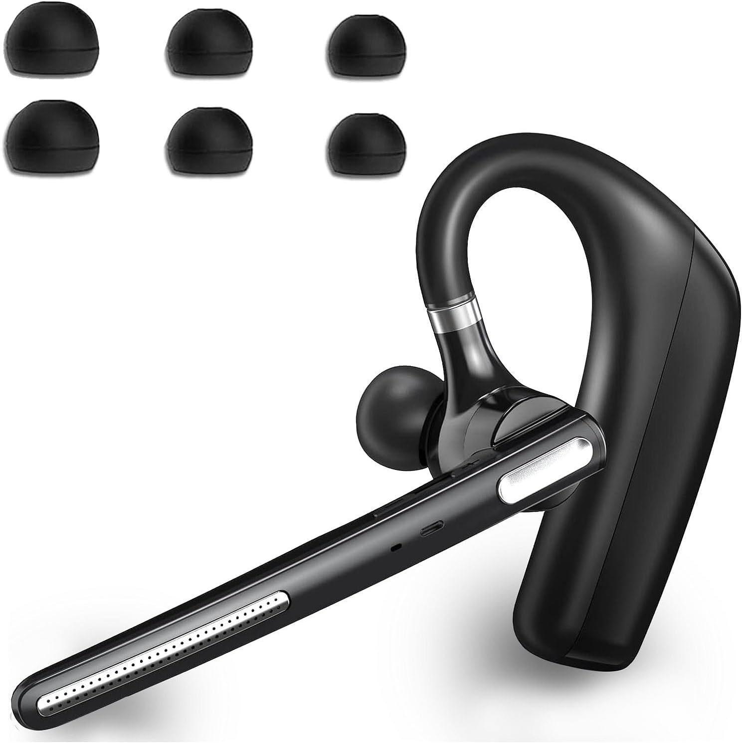 - 【Comfortable Fit for All-Day Wear】 The bluetooth earpiece for cell phone includes a rotatable ear hook and boom mic, along with 3 sizes and 2 shapes of eartips for a snug fit. Designed for long-term comfort and secure wear during extended use