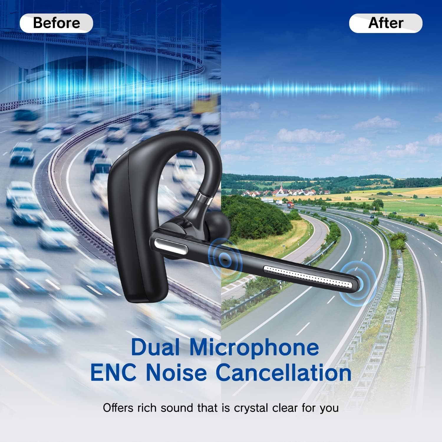 - 【Enhanced Call Clarity with ENC】 Equipped with dual microphones and intelligent ENC (Environmental Noise Cancellation), this Bluetooth headset minimizes surrounding noise to keep your voice clear and focused. Whether you're in traffic or on a call-packed workday, enjoy smooth conversations without distractions or the need to repeat yourself