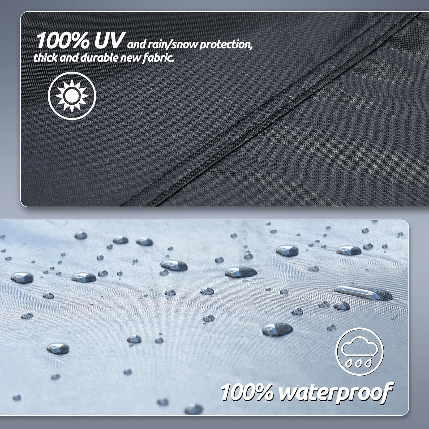 - ăHigh-Quality MaterialăMigavne car cover features a multi-layer composite material design. Layer 1 is PA coating, providing 100% waterproofing. Layers 2 consist of PEVA, with strong tear resistance to maintain integrity in harsh weather. Layer 3 is soft cotton, effectively safeguarding the car's paint.
