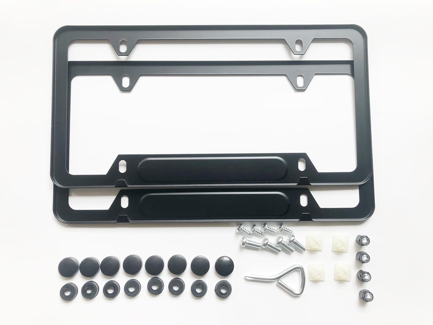 - What you will get: 2 license plate frame cover, 4 Screw Caps, 4 Self-tapping Screws, 4 Machine Screws, 4 Washers, 1 Screwdriver.All the necessary accessories provided for your installation.