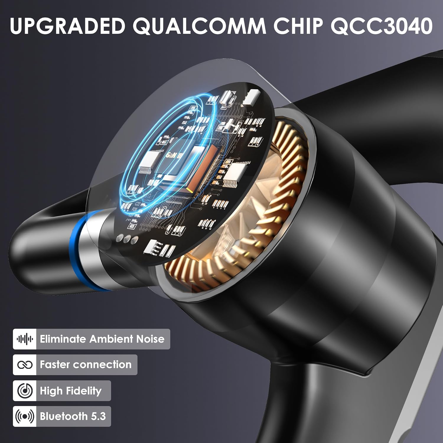 - Noise Cancelling Headset with Microphone; EKVANBEL UPGRADE wireless headset built in Qualcomm chip QCC3040 and AI environmental noise cancellation microphones, it can eliminate up to 99.99% of the ambient noise, whether you are in a busy central area or on a truck, callers can seamlessly communicate with you like face-to-face, making it the ultimate choice for remote workers. Our Bluetooth headset is equipped with separate mute buttons, your conversations are yours