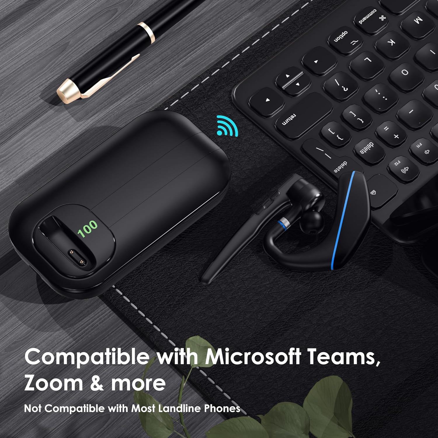 Bluetooth Headset V5.3, Wireless Earpiece with 1000mAh Charging Case, 96H Talktime, Hands Free Noise Canceling Headphones with Dual-Mic for Computer Cell Phones Trucker Home Work (Blue)