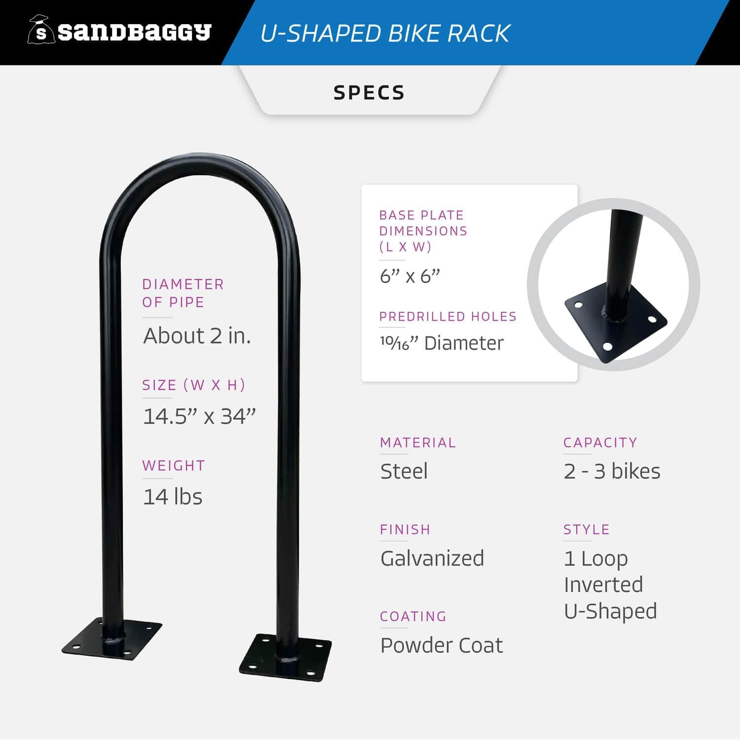 - Extra Sturdy! Easily install onto concrete with anchor bolts (NOT INCLUDED). Each base plate has 4 pre-drilled holes measuring 10/16" diameter.