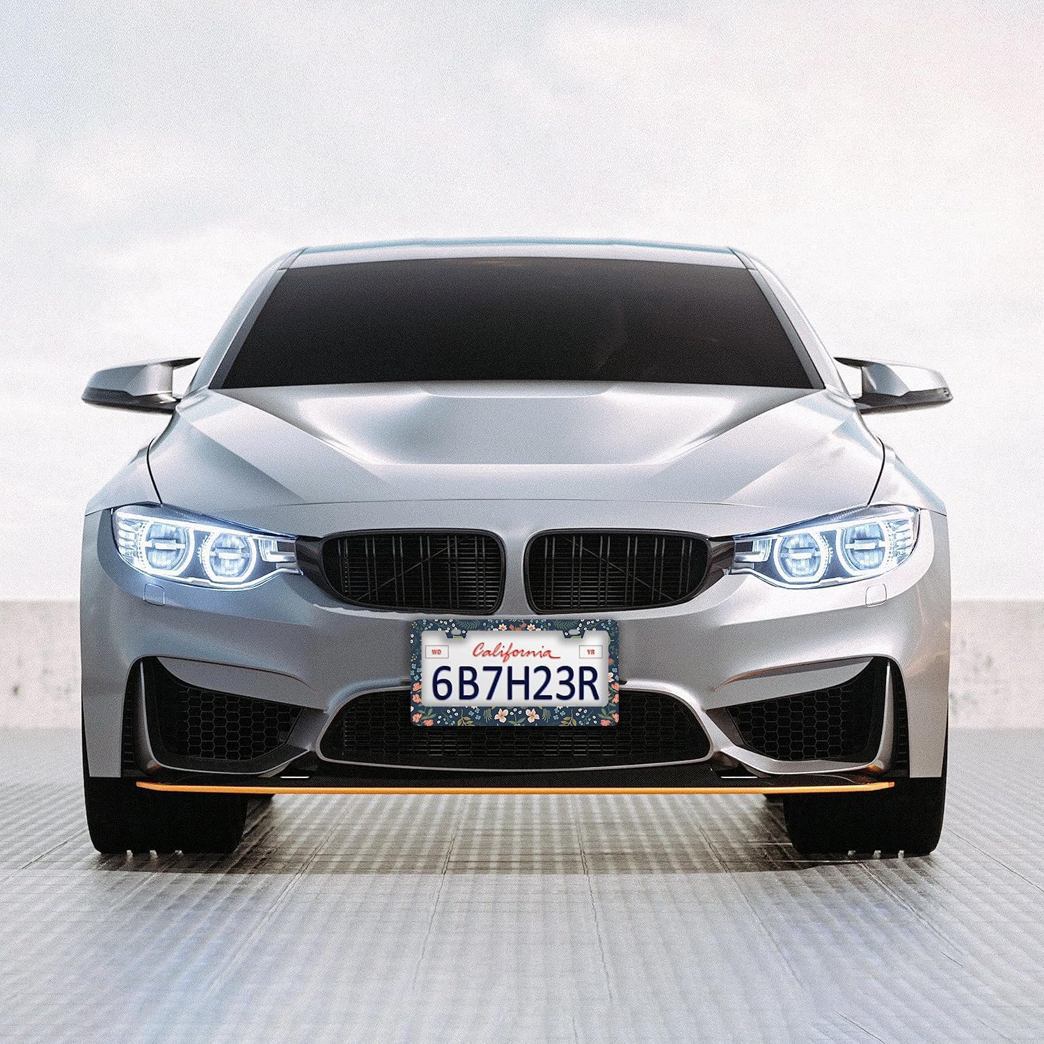 Colorful Floral Flowers License Plate Frames - 2 Pcs Set 2 Holes Stainless Steel Metal Auto Car Accessories Decoration License Plate Frame Cover Size 6.3" x 12.2" Fit US Vehicles for Women Men Gift