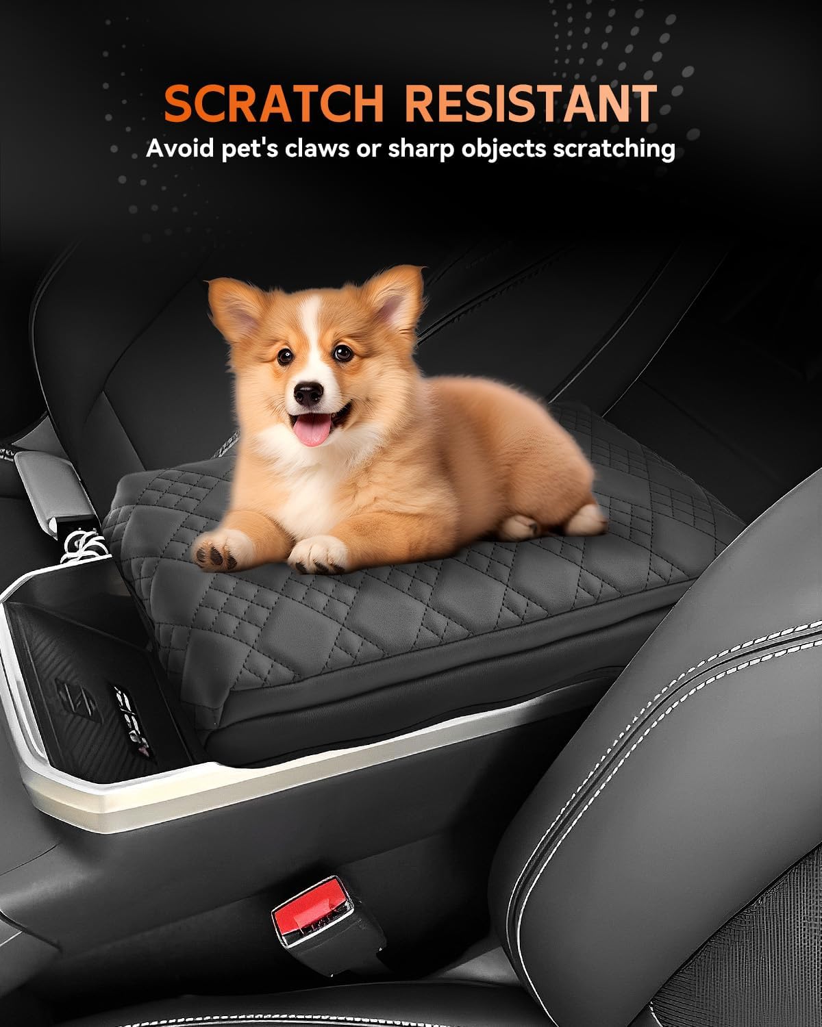 - [Easy To Install] Designed with a Velcro strap to secure it to the center console (no tools required). With super stretch and pull resistance, it will not change the open/close function of the armrest box.