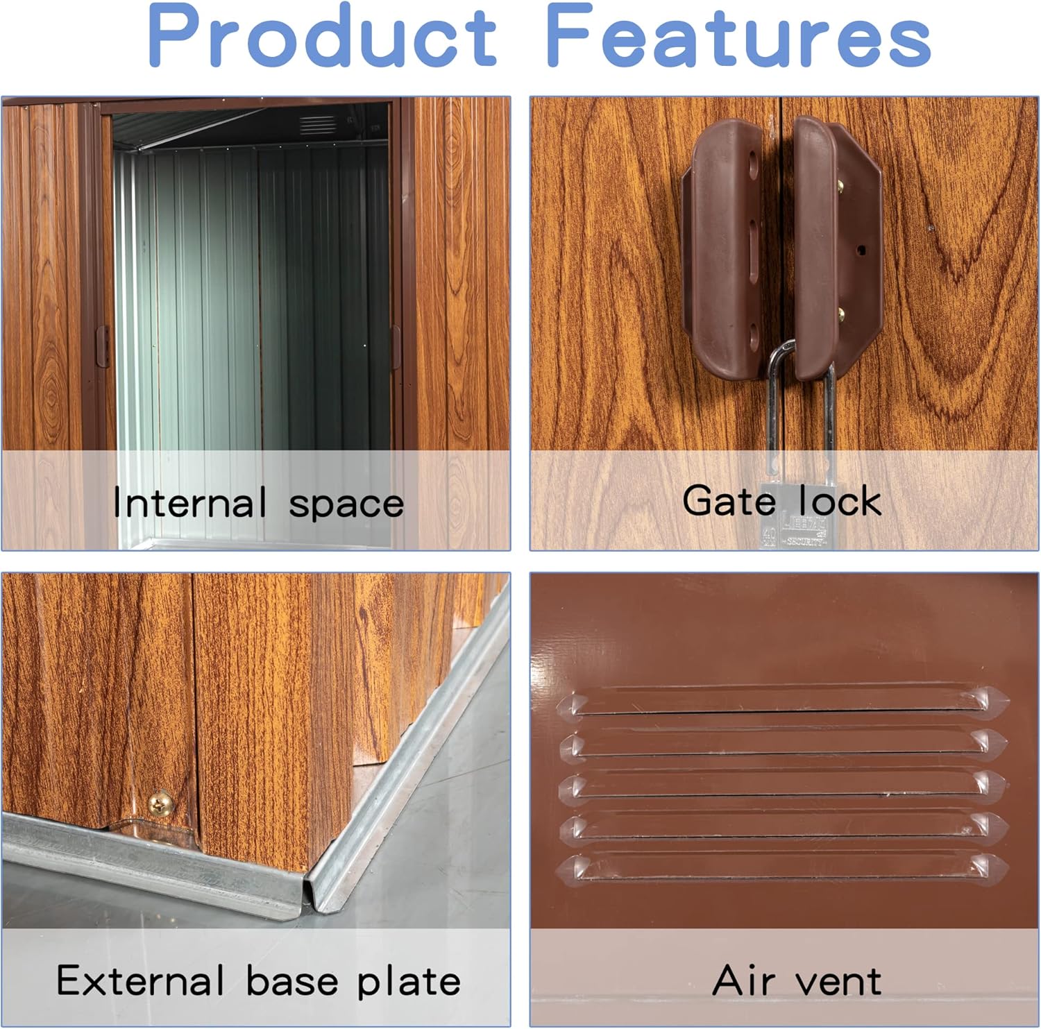 - ๐ก๐๐ฅ๐ฅ-๐ฐ๐๐๐ญ๐ก๐๐ซ ๐๐ญ๐จ๐ซ๐๐ ๐ ๐๐ก๐๐: Our metal shed 6x6 features smooth sliding doors with handles and a heavy-duty lock for enhanced security. This practical storage building is perfect for storing gardening tools or serving as a warm pet house. The sloped roof effectively prevents leaks and snow buildup, while the transparent side window provides soft natural light. Four integrated punched vents improve airflow, keeping items dry and well-preserved in any weather conditions.