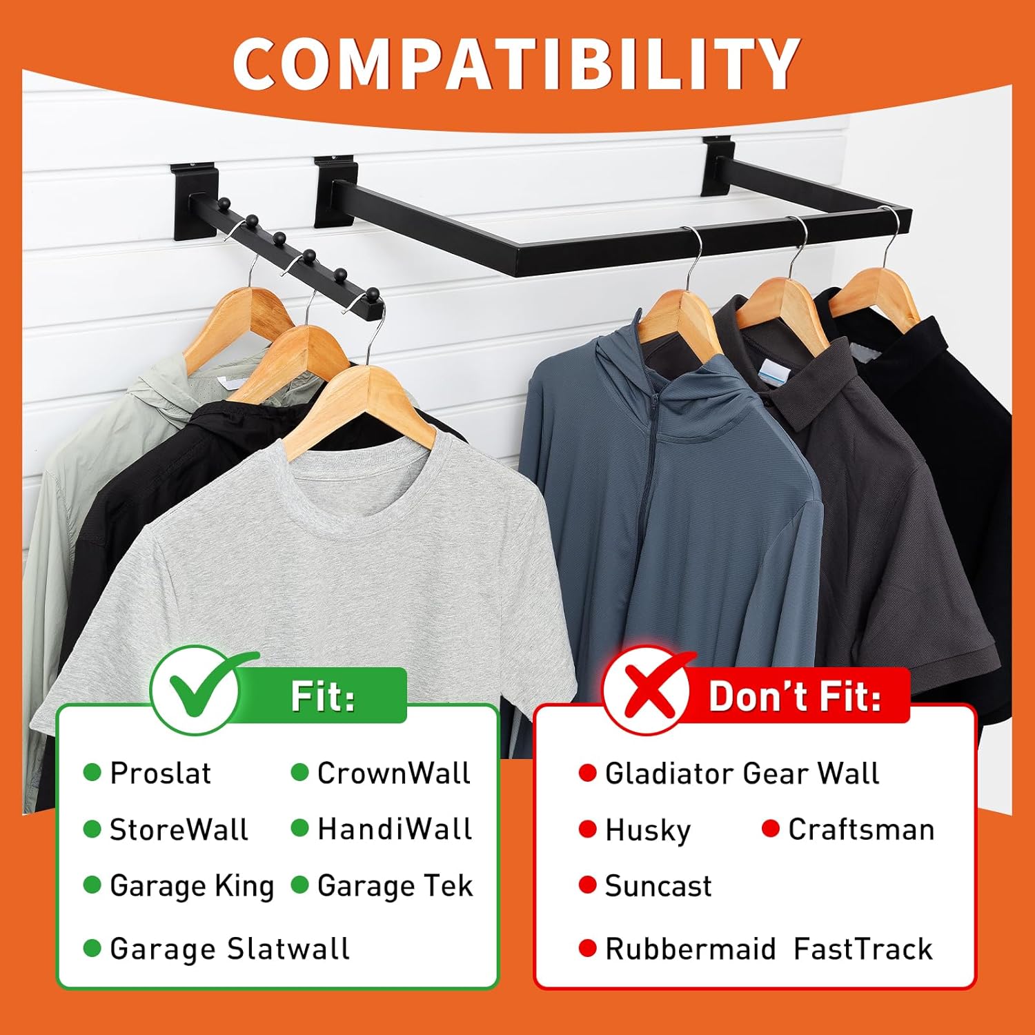 - Versatile Applications: Perfect for garment retail stores (hang jackets, accessories), home garages (organize tools, sports gear), or commercial showrooms(merchandise display ). Secure, adjustable, and visually appealing!