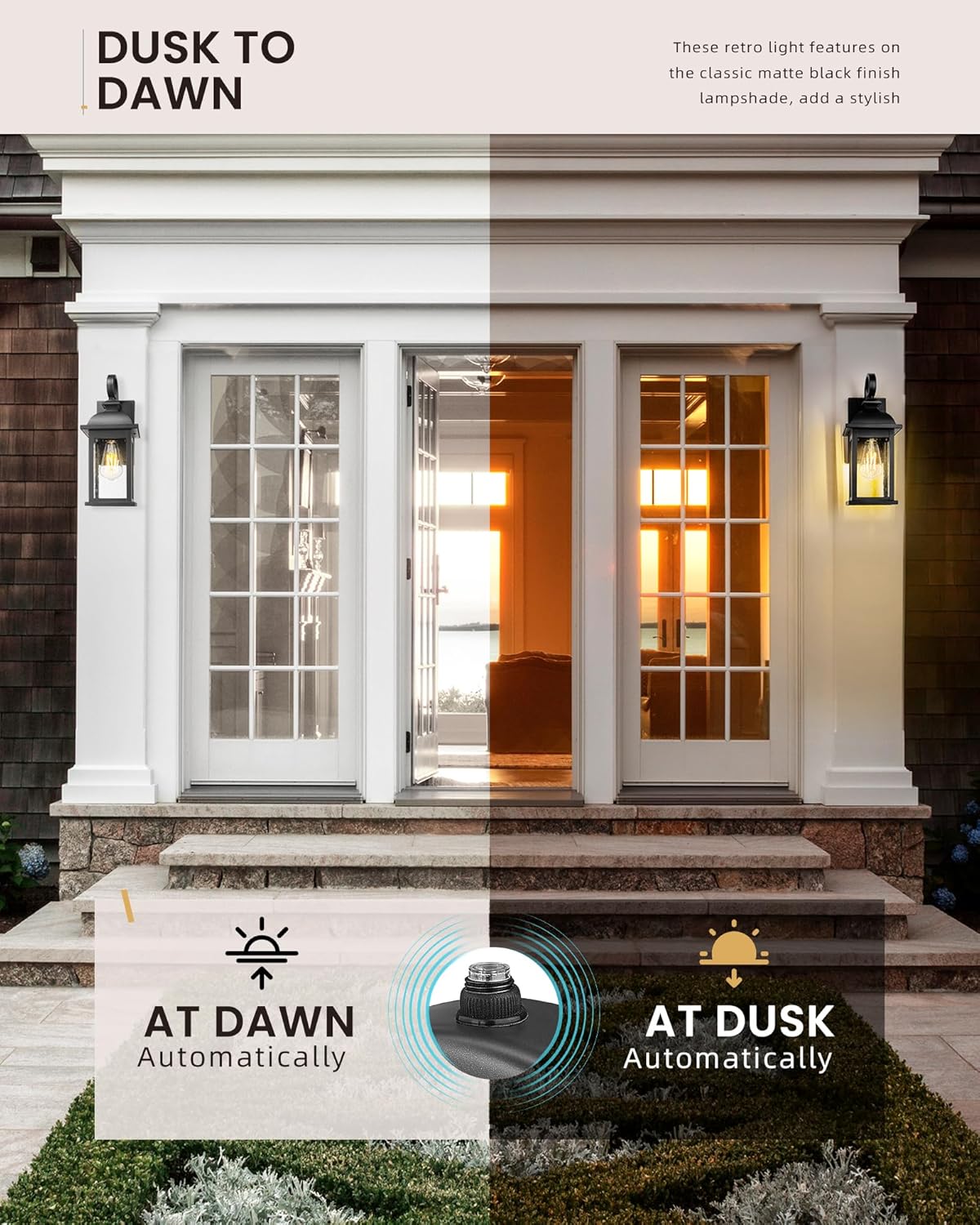 - Dusk to Dawn Outdoor Lighting: Built-in sensor automatically turns the light on at dusk and off at dawnโno switch needed. A perfect dusk to dawn outdoor lighting solution for energy-efficient porch light fixture or patio wall light fixture setups.
