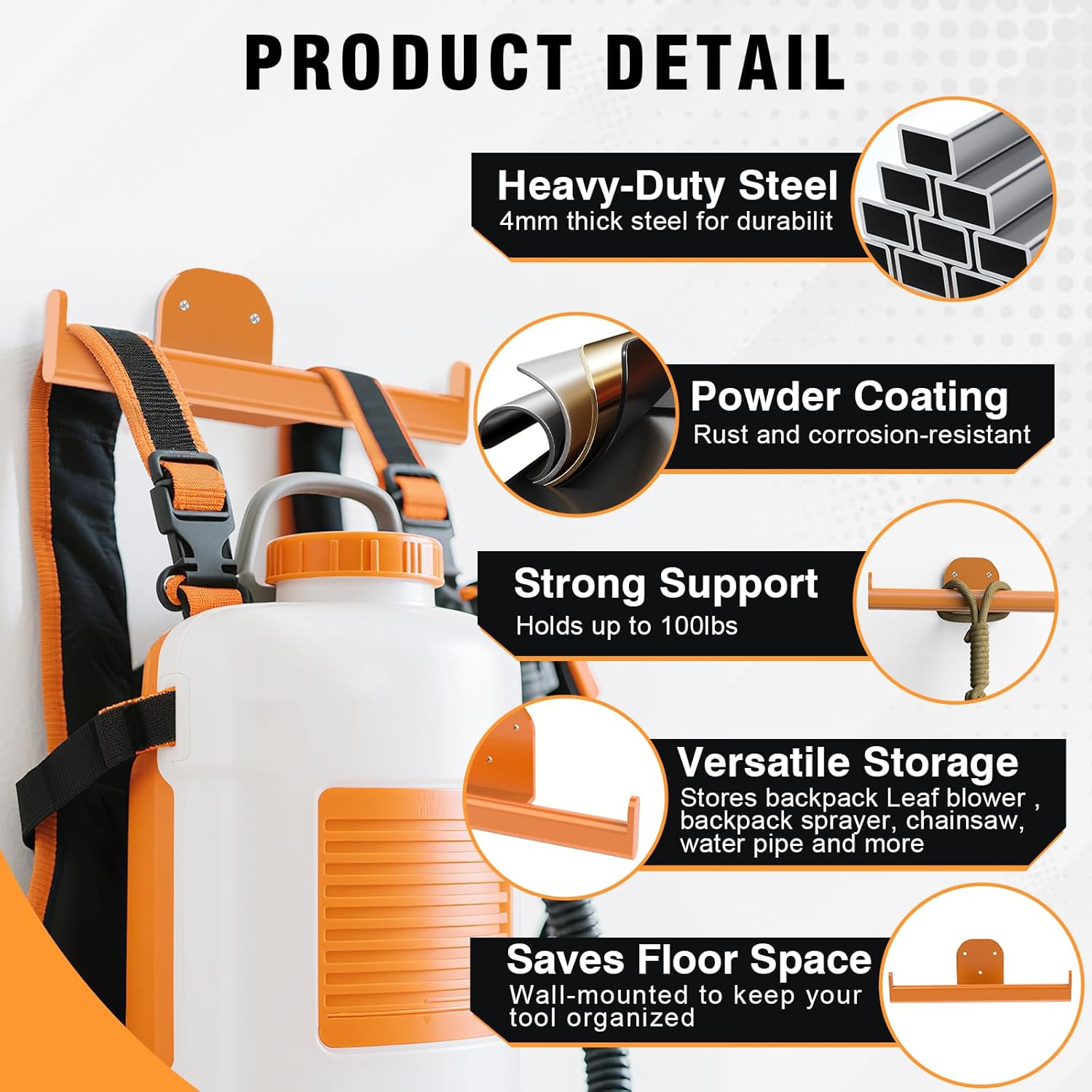 Backpack Leaf Blower Hanger, Backpack Sprayer Wall Mount, Lawn Care Accessories, Garage Storage, Weed Eater Hanger Garage Organization Storage, 1 Pack