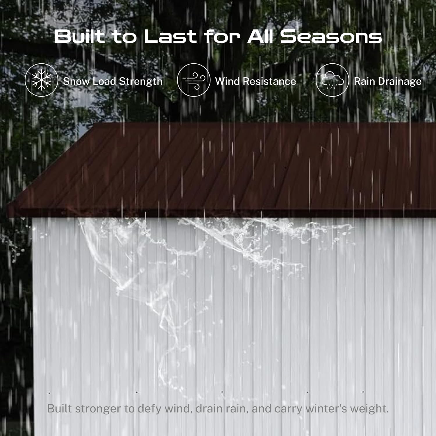 - 【Ultra-Durable for Harsh Climates】Constructed with 24/34-gauge galvanized steel, this weatherproof garden shed resists rust, 6 Beaufort winds (24-30mph), and heavy snow, ensuring a 10-year lifespan in coastal or snowy regions