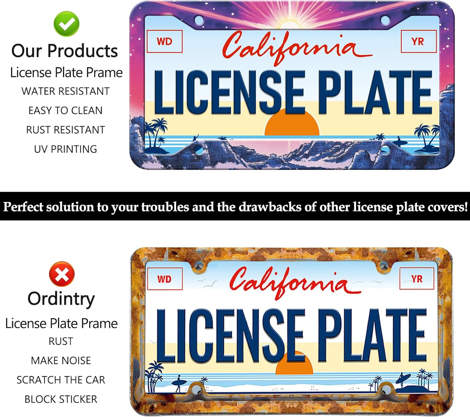 - No Fear Of Wind And Rain: It can be used with confidence in any bad weather conditions, will not be damaged and rusted, protect our vehicle license plates, and perfectly decorate your car