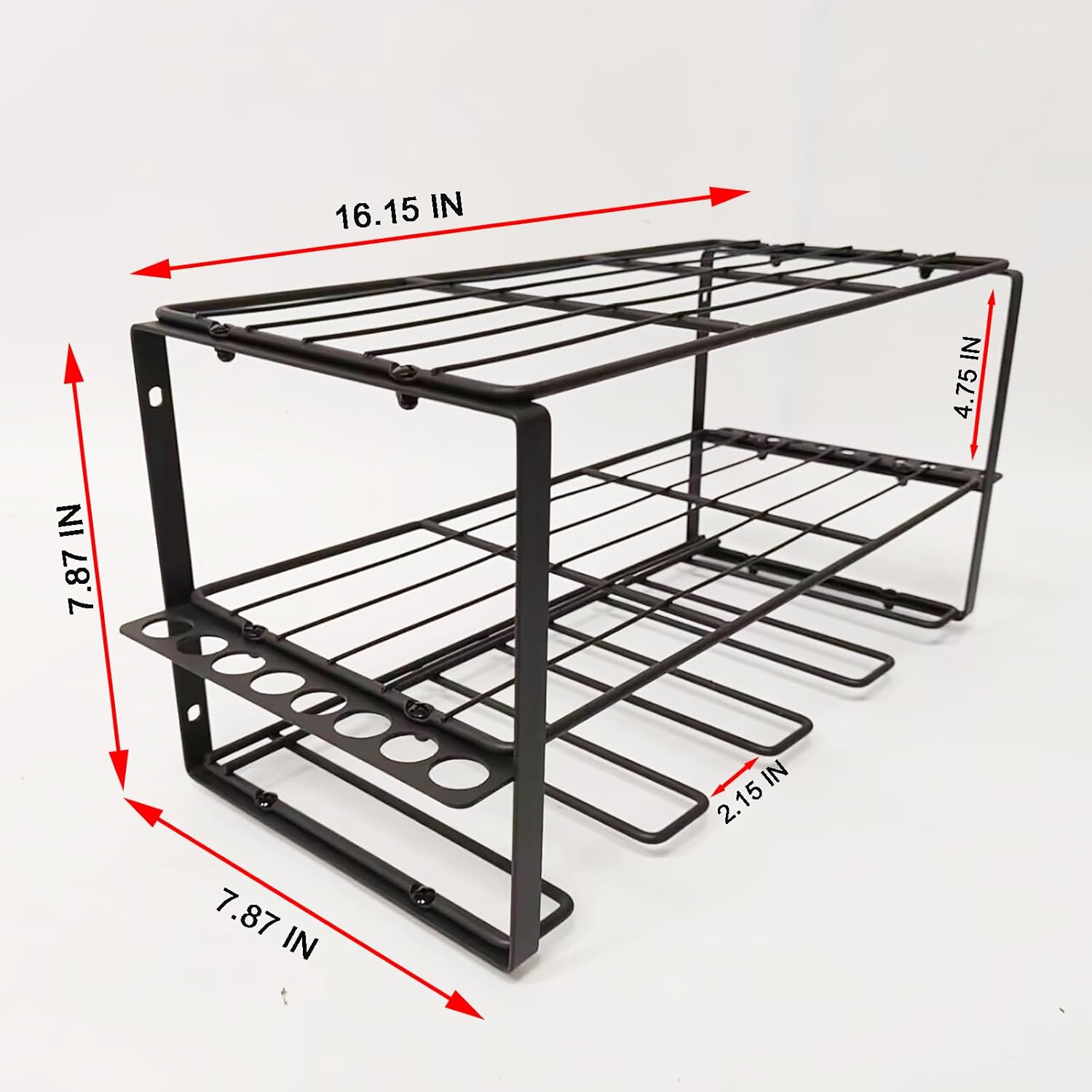 - [Heavy-Duty Tool Organizer Rack] โ Built from a robust, fully welded steel frame with a rust-resistant, matte black powder-coated finish to prevent rust, chipping, and cracking for lasting strength and reliability.