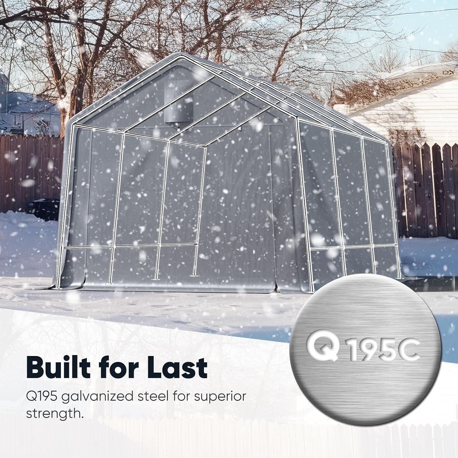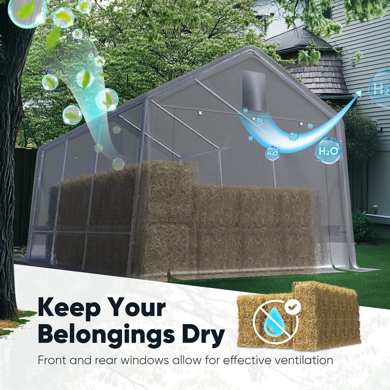 - 【Multiple Uses】This carport storage shed can be a boat storage shelter, ATV storage shed, truck storage tent, or vehicle garage shelter. It is also suitable for large machinery, firewood, or any other gardening tools.