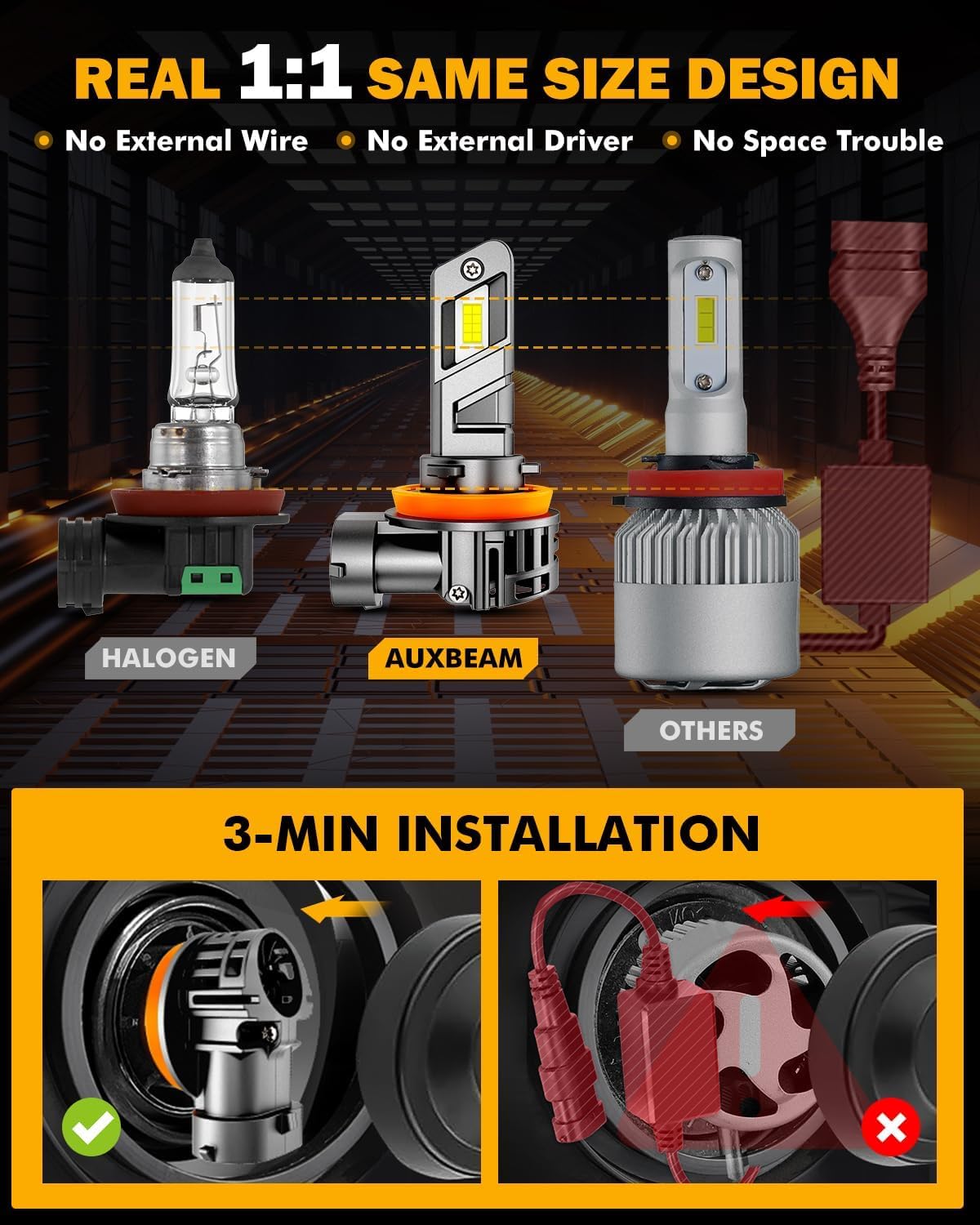 Auxbeam H11 H8 H9 Fog Lights, 600% Brighter Wireless H11 Light for Off-Road Use or Fog Light, Plug and Play